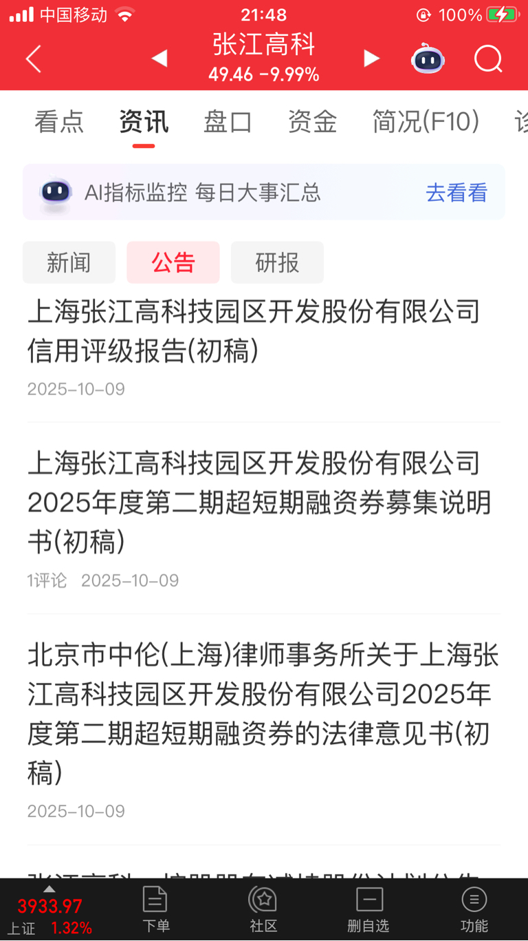 $张江高科(SH600895)$ 明天反包!同花顺有利好告示