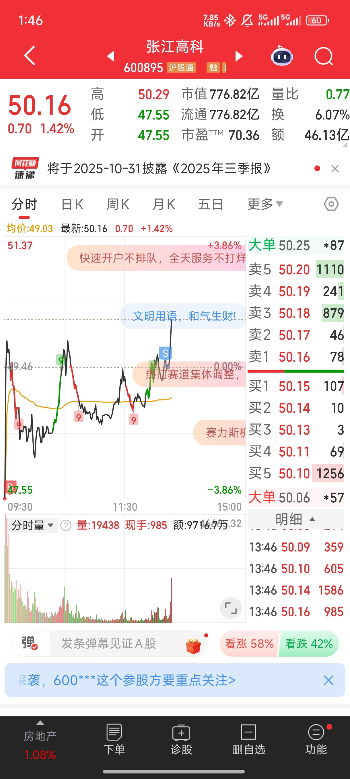 $张江高科(SH600895)$ 有什么毛病,一卖就拉,