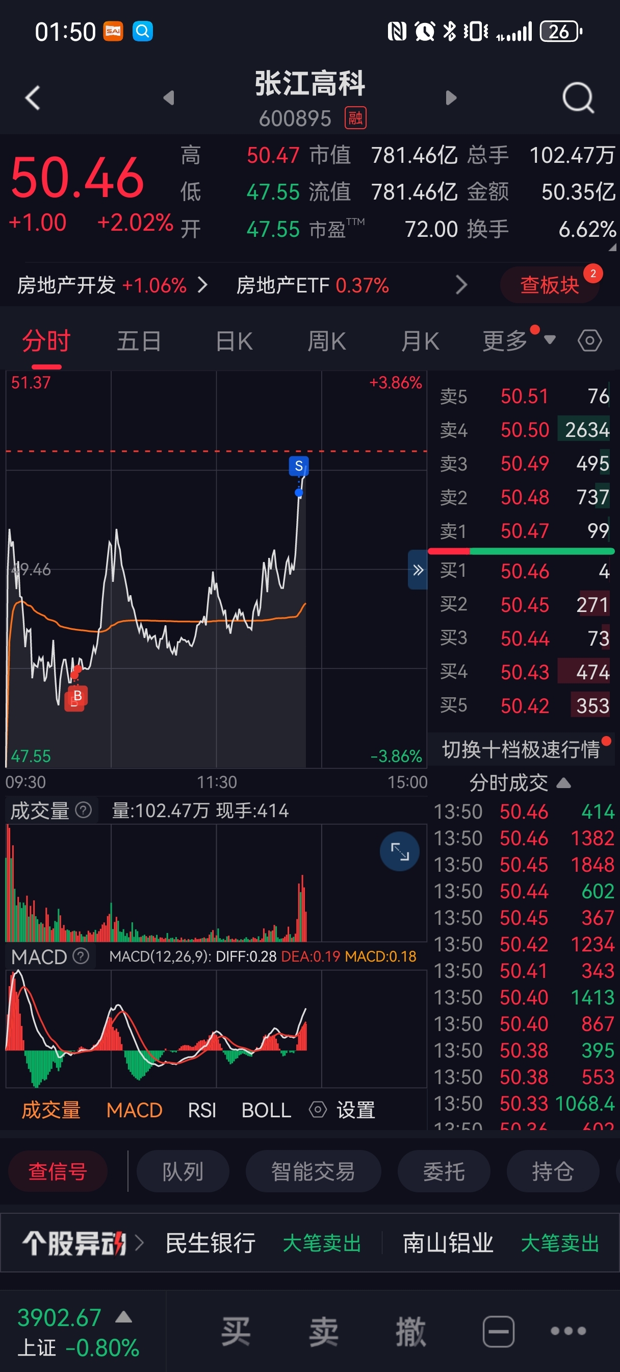 $张江高科(SH600895)$ 已跑。哈哈哈