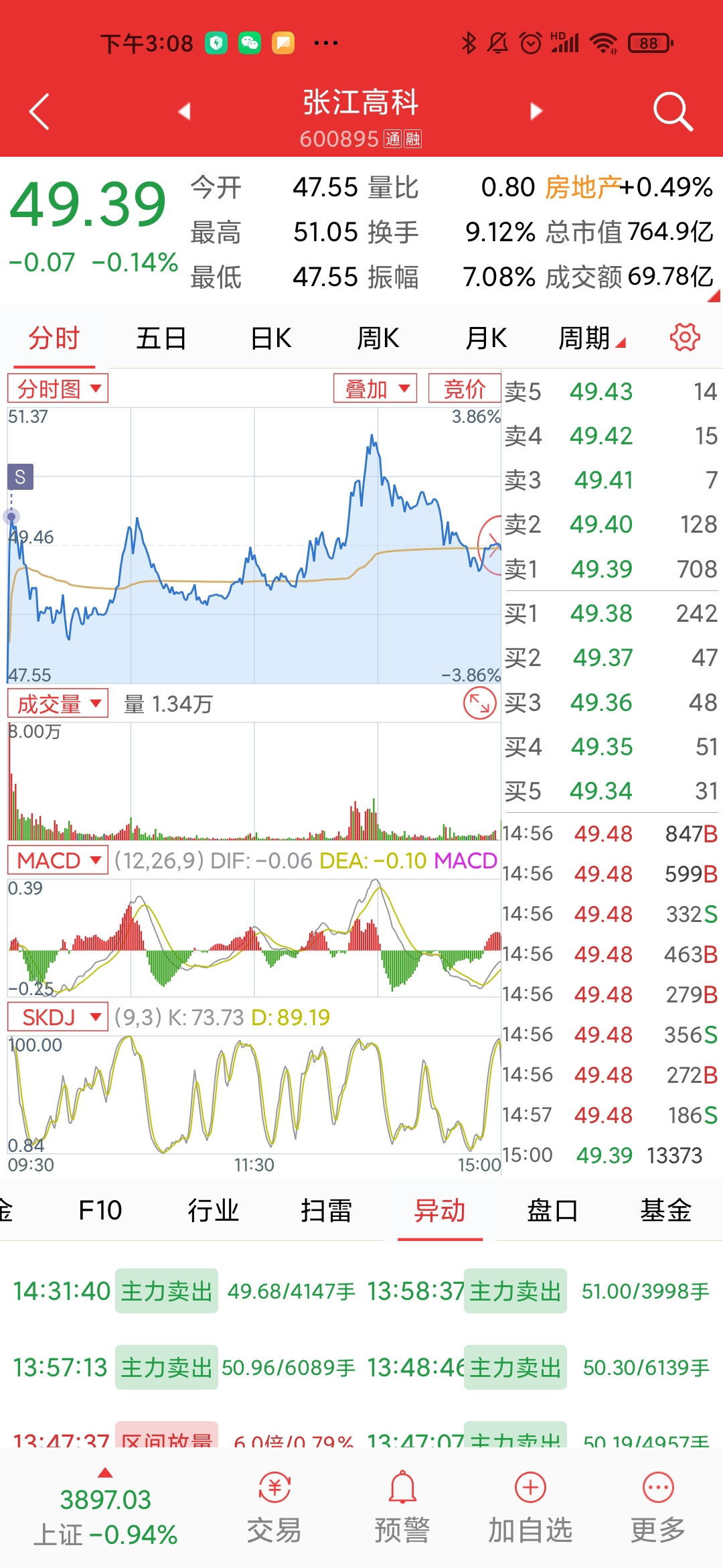 还好早上抛出去了,虽然没有赶上下午的拉升,但是也知足了。本来计划昨天低开就卖,结果大低开,想等等看,结果下午出不去了,现实比预期的空方力量要大,就这吧,大盘也要开始调整了