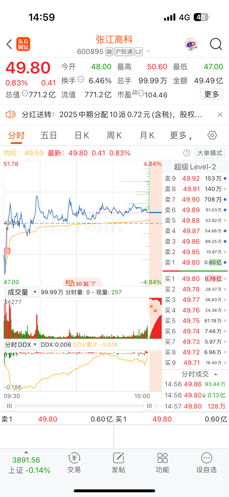 $张江高科(SH600895)$ 尾盘集合竞价