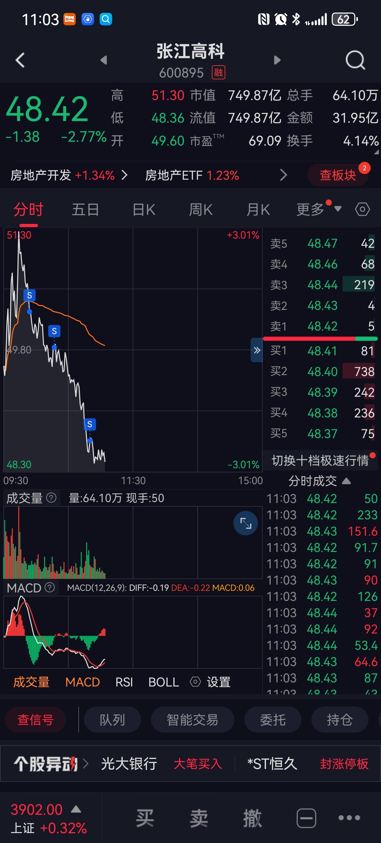 $张江高科(SH600895)$ 已经分三批清仓了,这跌法,我认了……