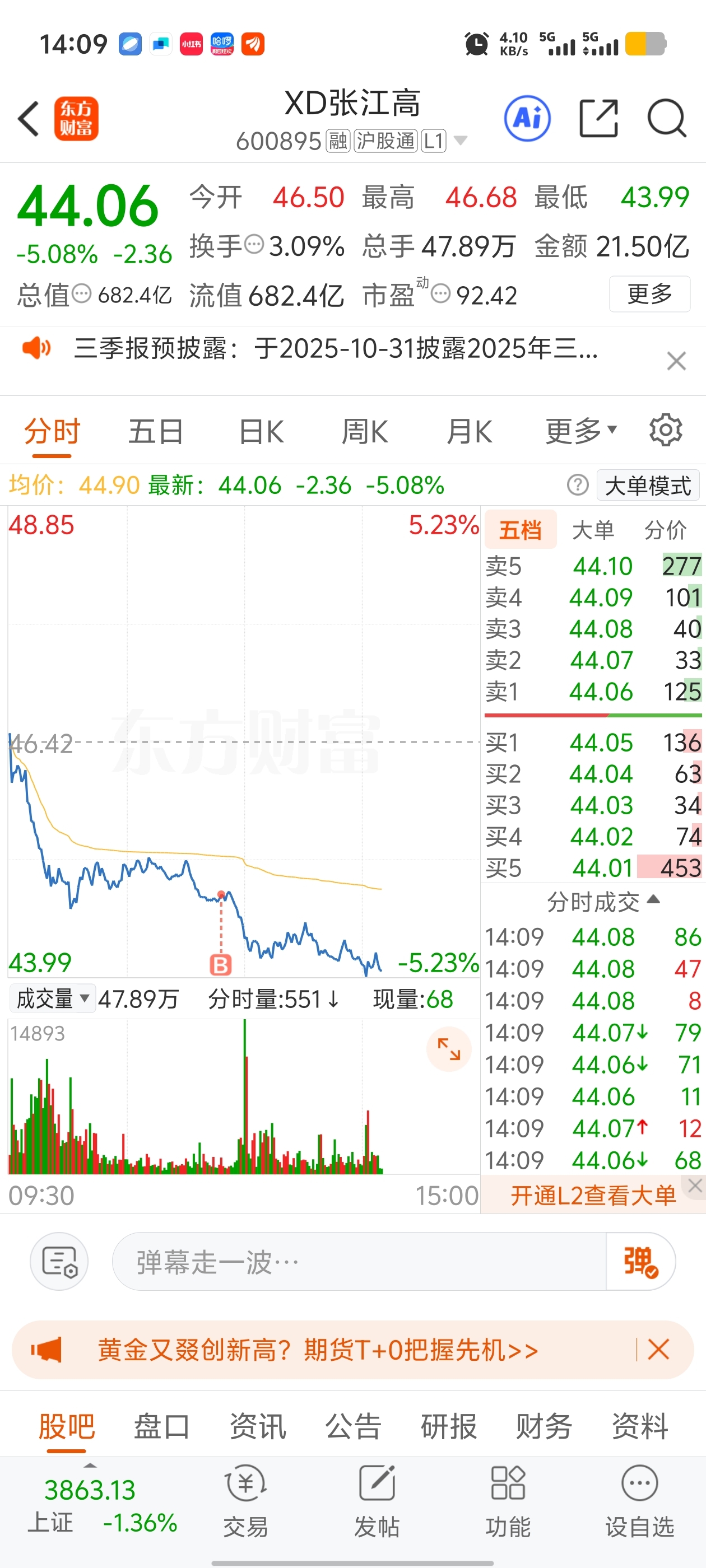 $XD张江高(SH600895)$ #炒股日记# 我以为是底,又被骗了,草