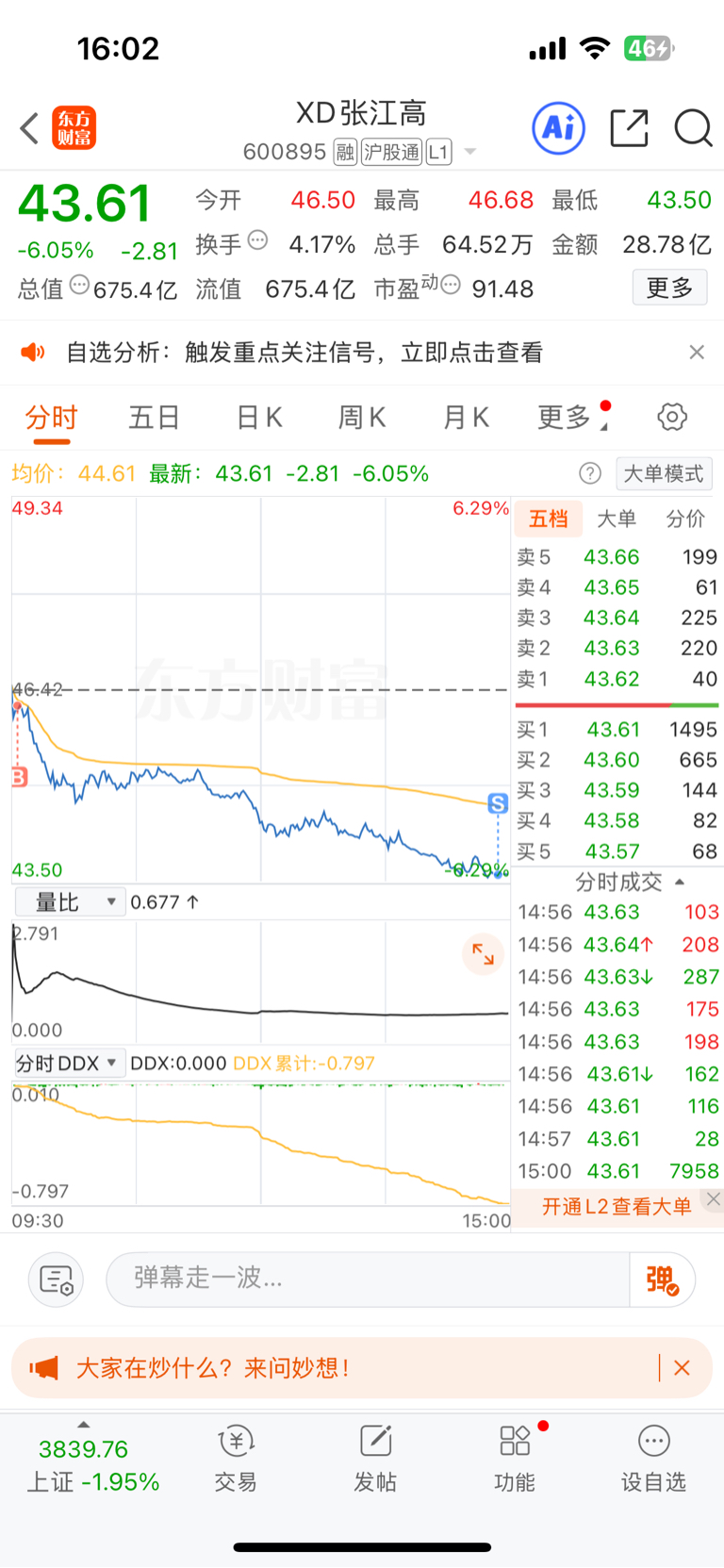 $XD张江高(SH600895)$ 做了二个反T,成本好高好高,真难