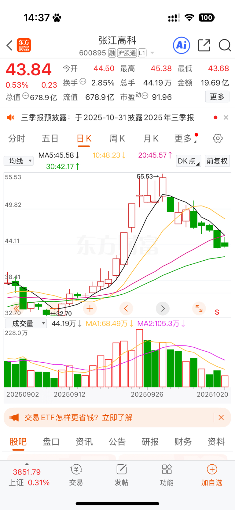 $张江高科(SH600895)$ 不会涨了是吗?跌了这么多天了