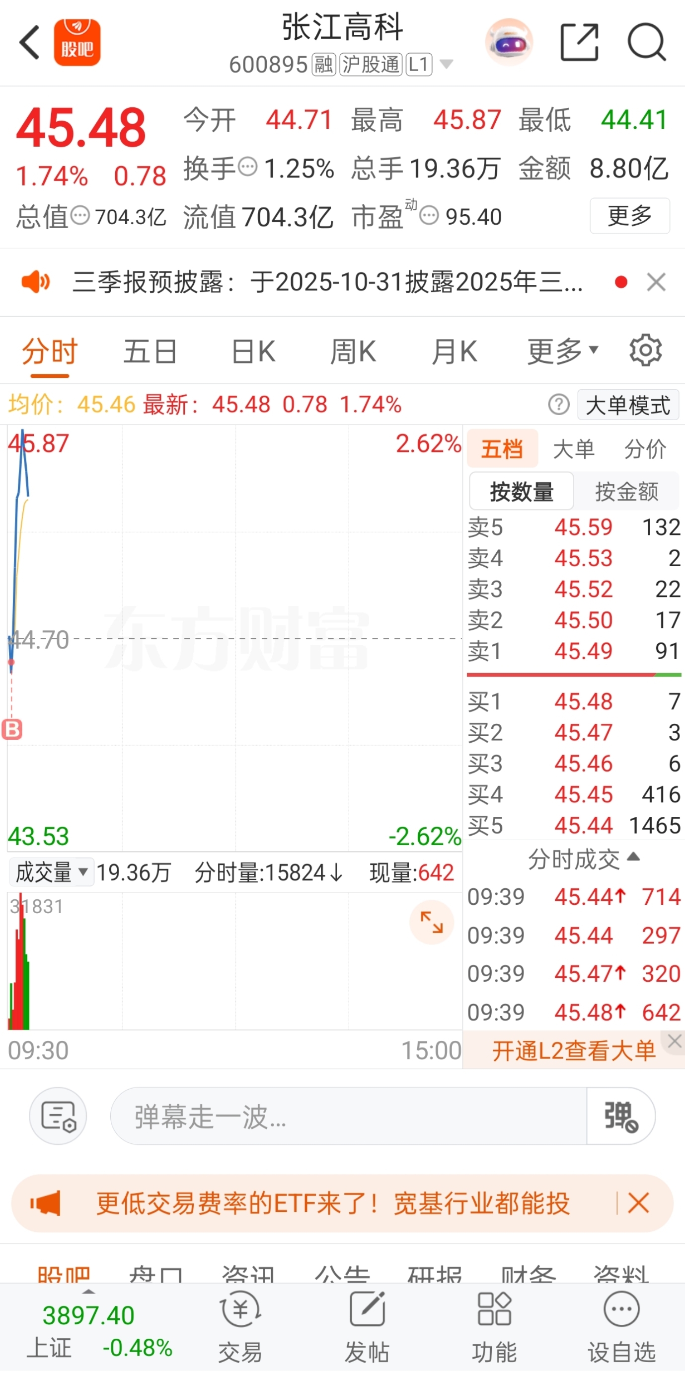 早盘选择水下低吸介入了$张江高科(SH600895)$ 个人觉得可以期待一波