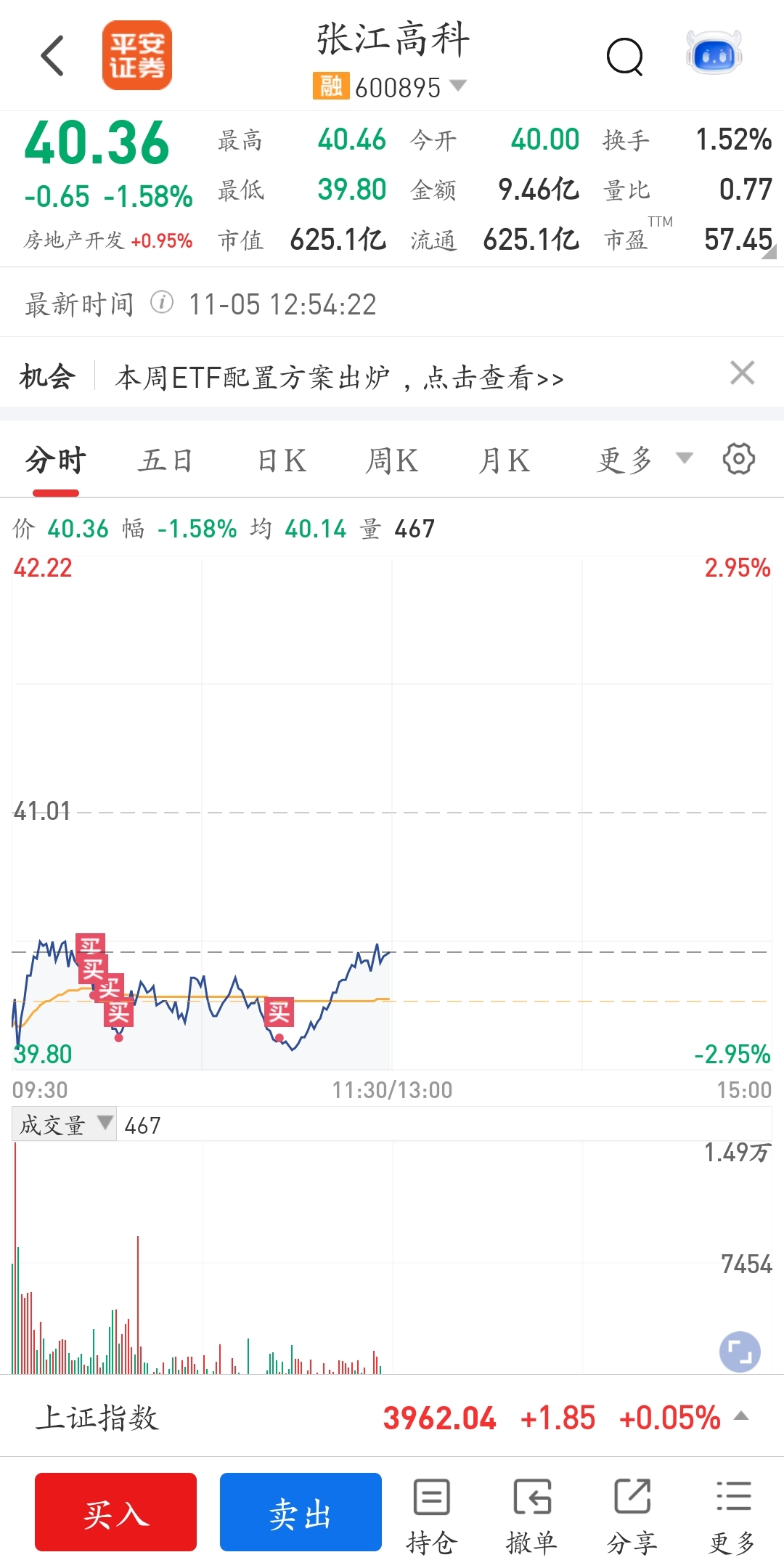 $张江高科(SH600895)$ 怕啥,先吃5千股,