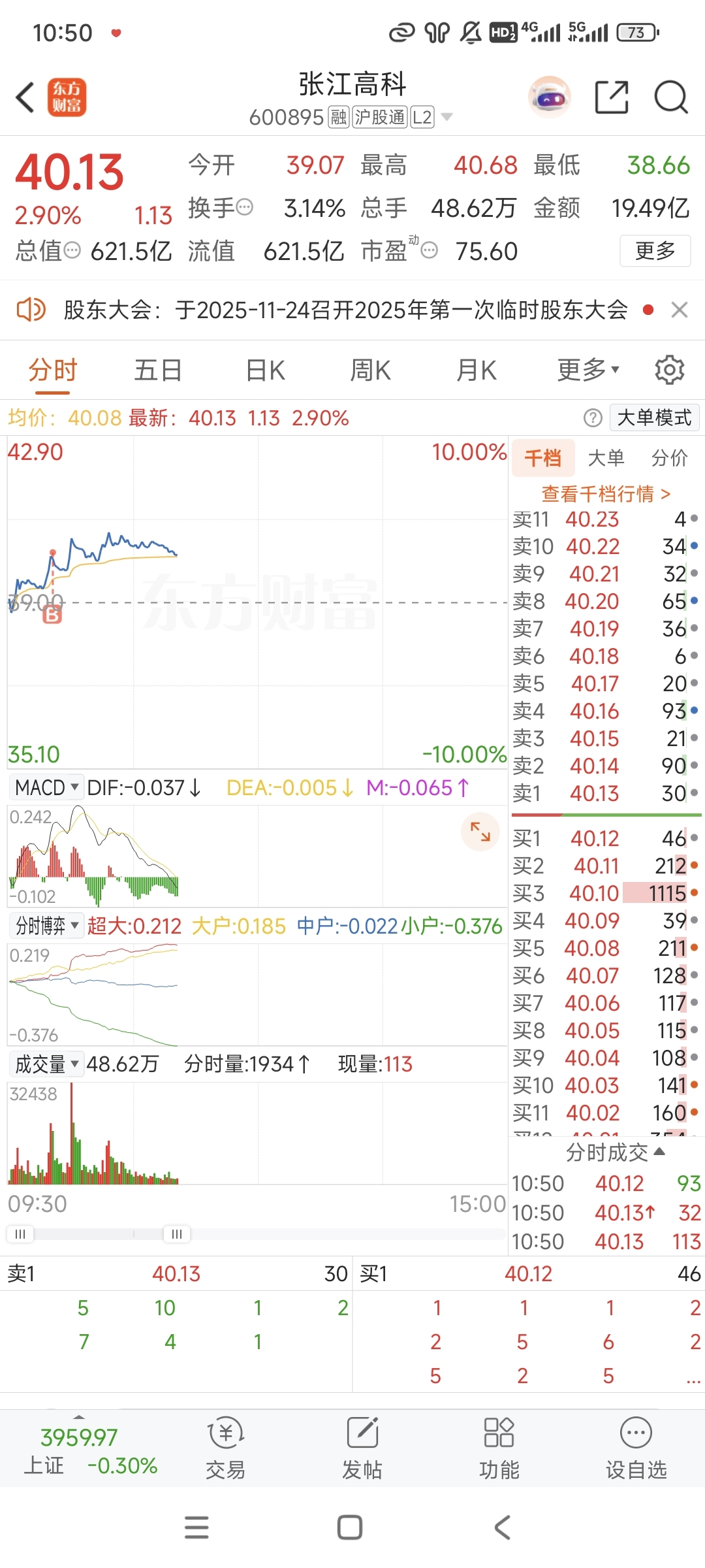 $张江高科(SH600895)$ 又给我挂山顶了,家人们怎么办啊,为什么买进去就套我,明天又要割肉了吗