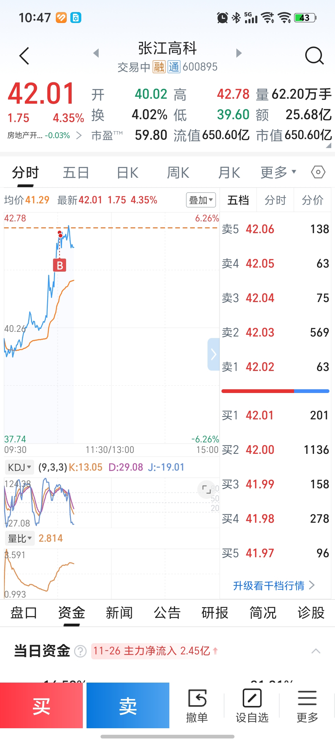 $张江高科(SH600895)$ 昨天清仓跑了,今天回来买了2手,直接挂山顶了