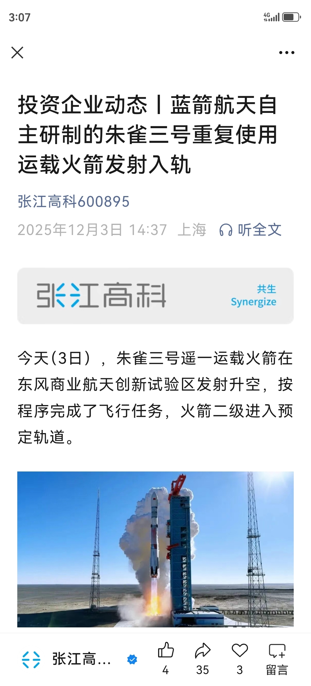 $张江高科(SH600895)$ 不知道这次的,不锈钢火箭,下次能不能重复使用?