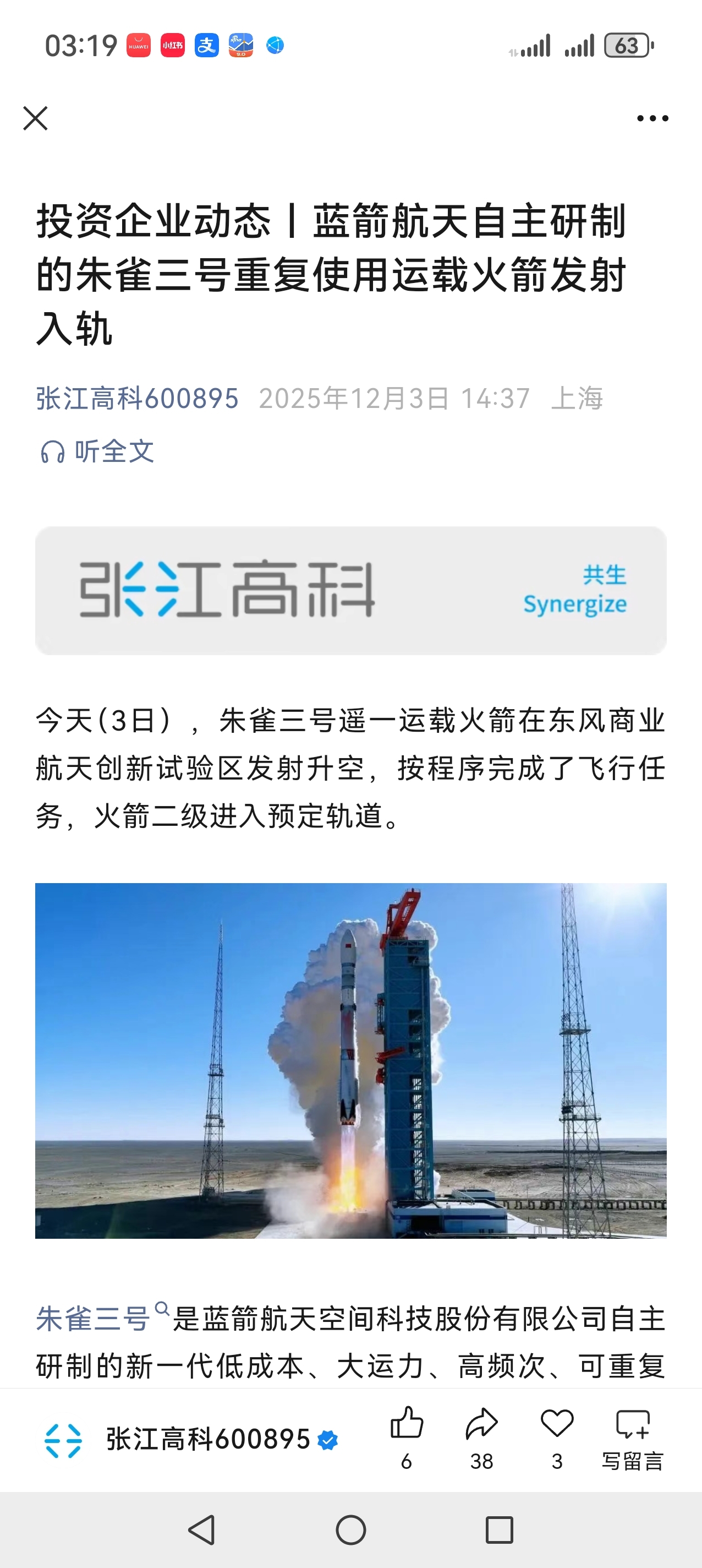 $张江高科(SH600895)$ 朱雀三号首飞发射成功!