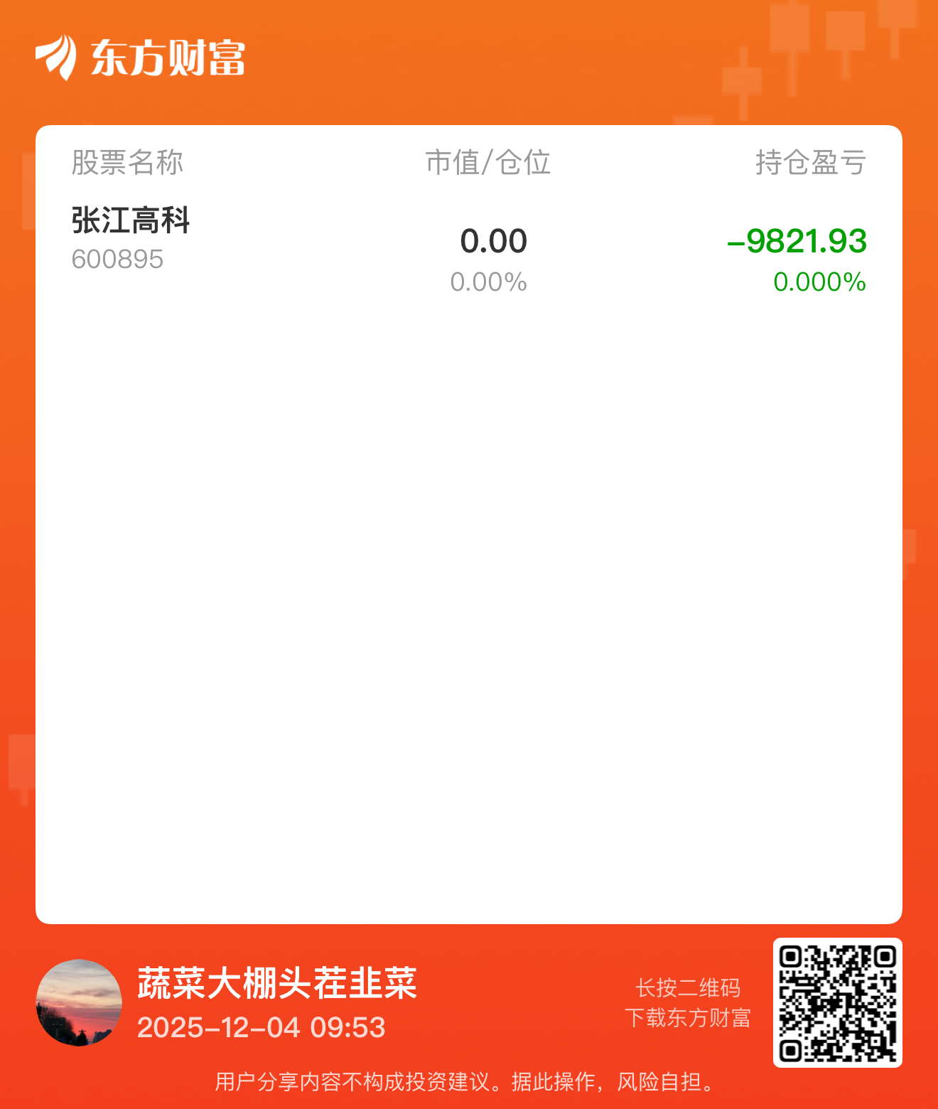 $张江高科(SH600895)$ 清仓了祝大家股市大赚