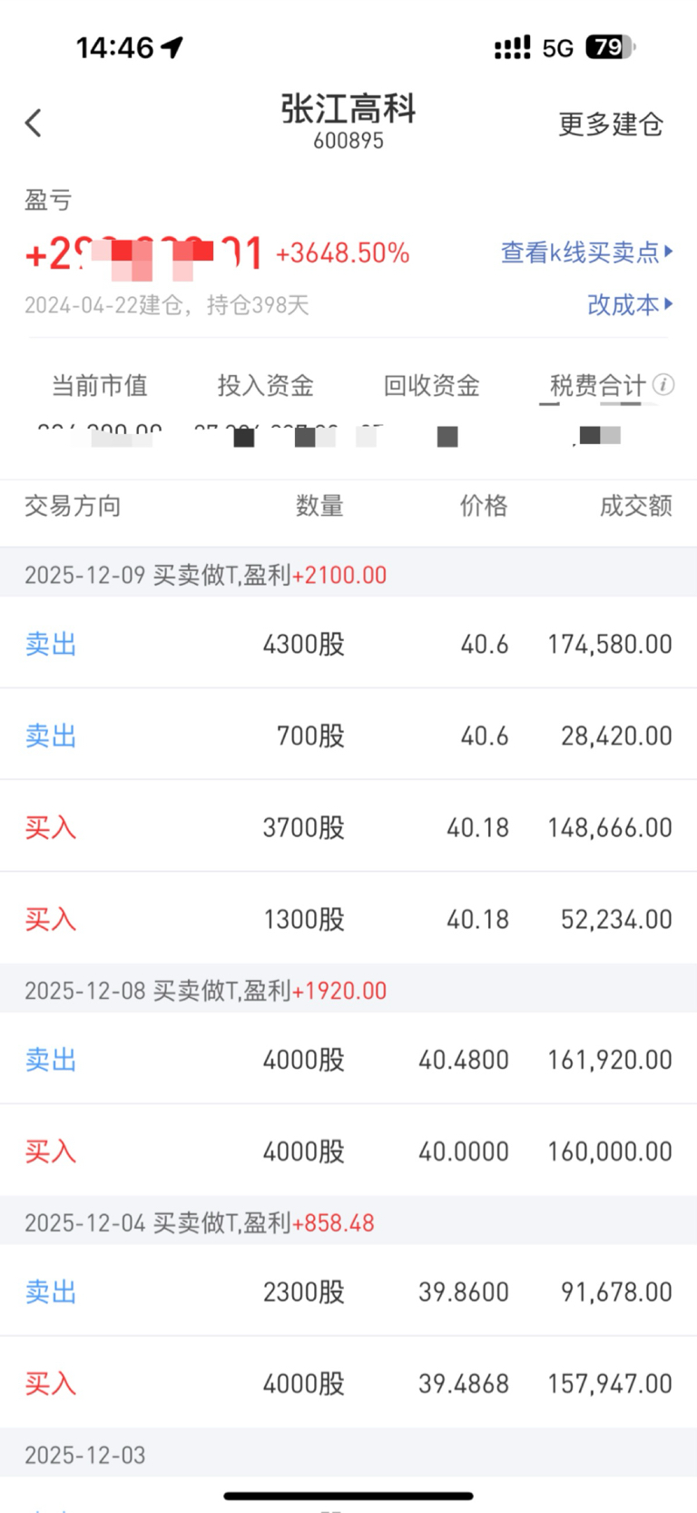 $张江高科(SH600895)$ 持仓398天,每天做一次T