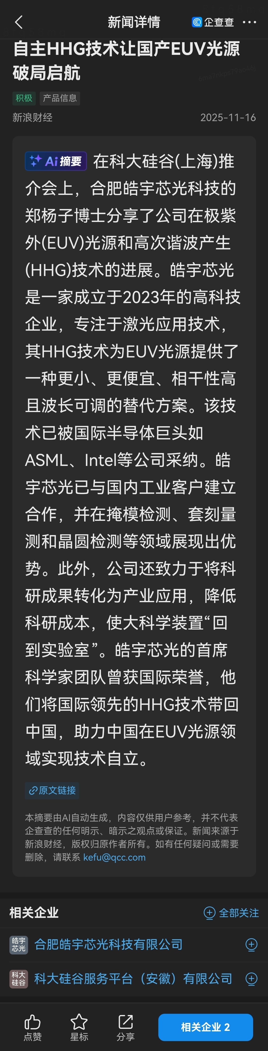 张江高科孙公司~自主HHG技术让国产EUV光源破局启航