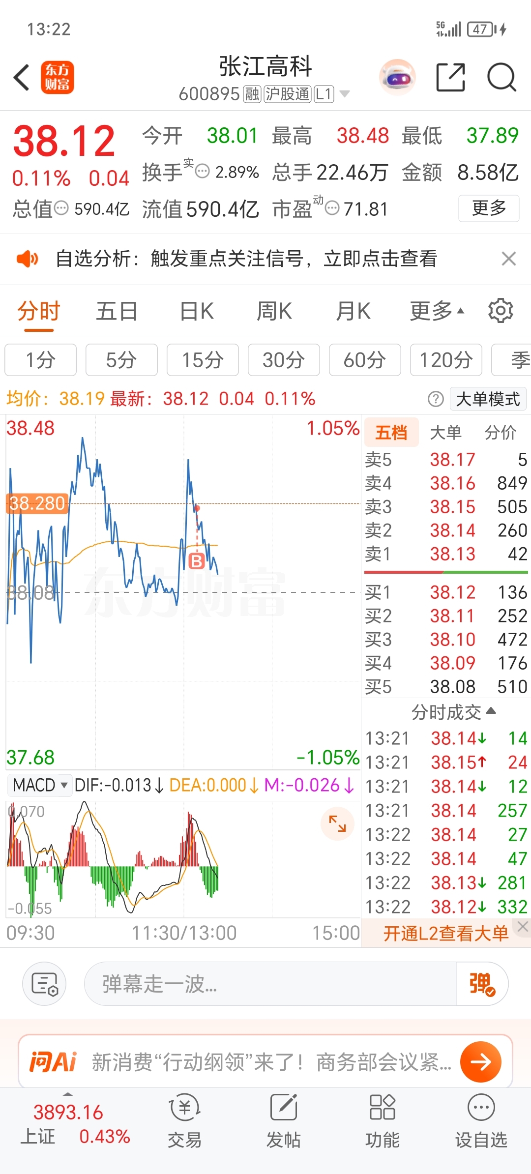 $张江高科(SH600895)$ 我又来了兄弟们可好