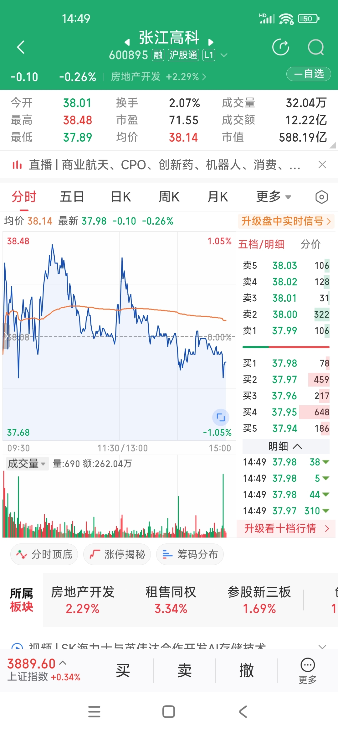$张江高科(SH600895)$ 所属板块全部都是涨得,唯它独跌