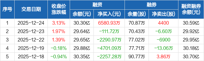 张江高科:融资净买入6580.93万元,融资余额30.3亿元(12-24)