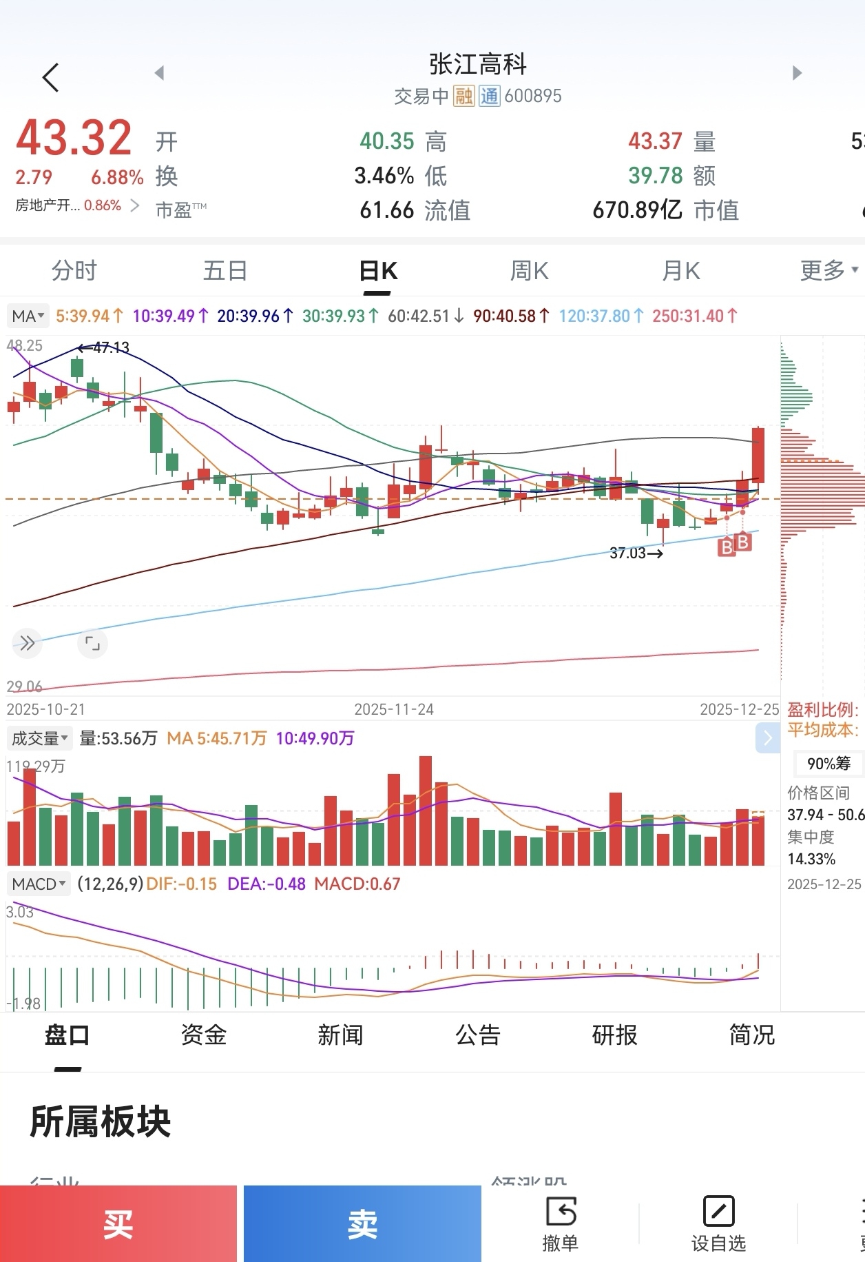 $张江高科(SH600895)$ 这咋整,仓位没上够。
