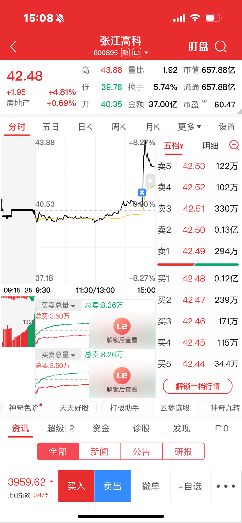 $张江高科(SH600895)$ 你们应该感谢我,我感觉我被监控了,所以我卖出了200股,果然他就拉起来了