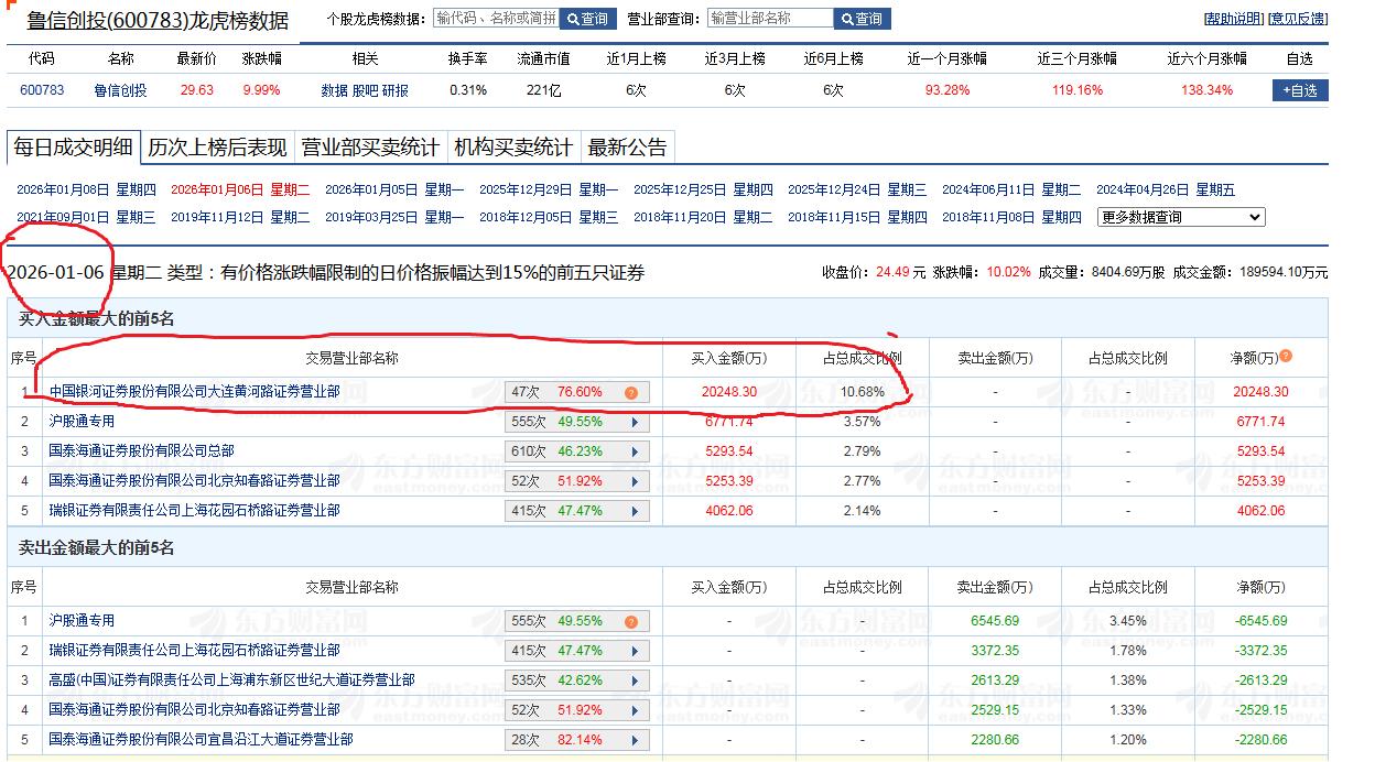 小群同志6日进鲁信创投2亿元,后面三连板,今天还没出货!!今天新进金风科技3.8亿!!!