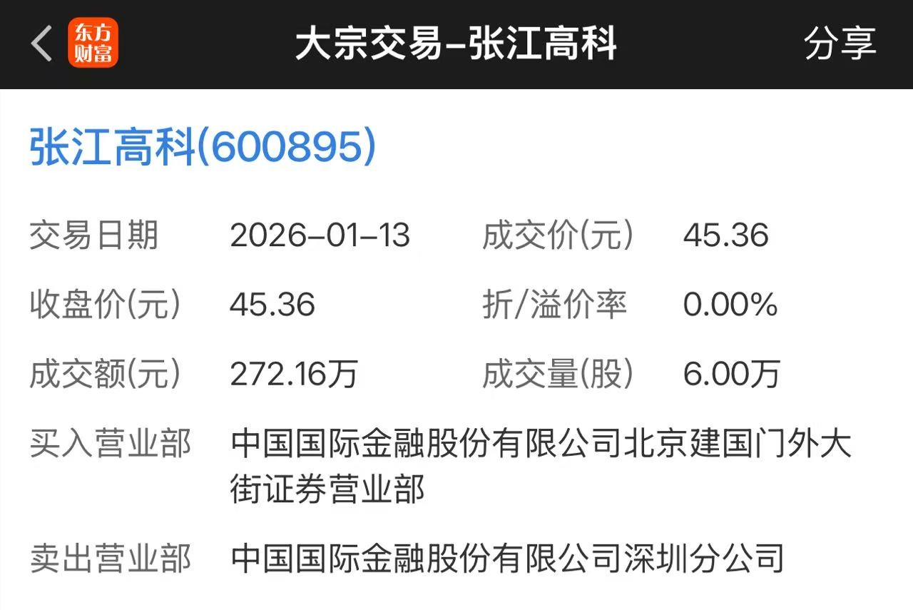 $张江高科(SH600895)$ 中金公司今天大宗交易!本可以二级市场瞬间抛售的,而他却锁仓位,其实就是提示散户们,我中金公司还看多!