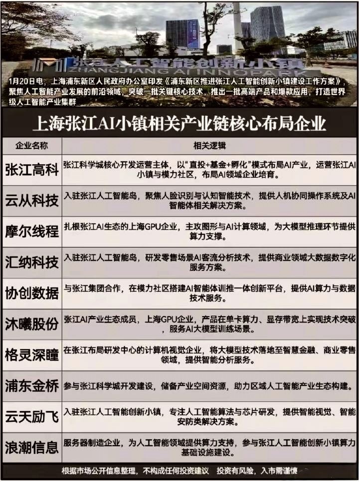 张江高科:上海张江AI小镇概念,浦东新区印发张江人工智能创新小镇建设方案,剑指世界级AI产业集群。