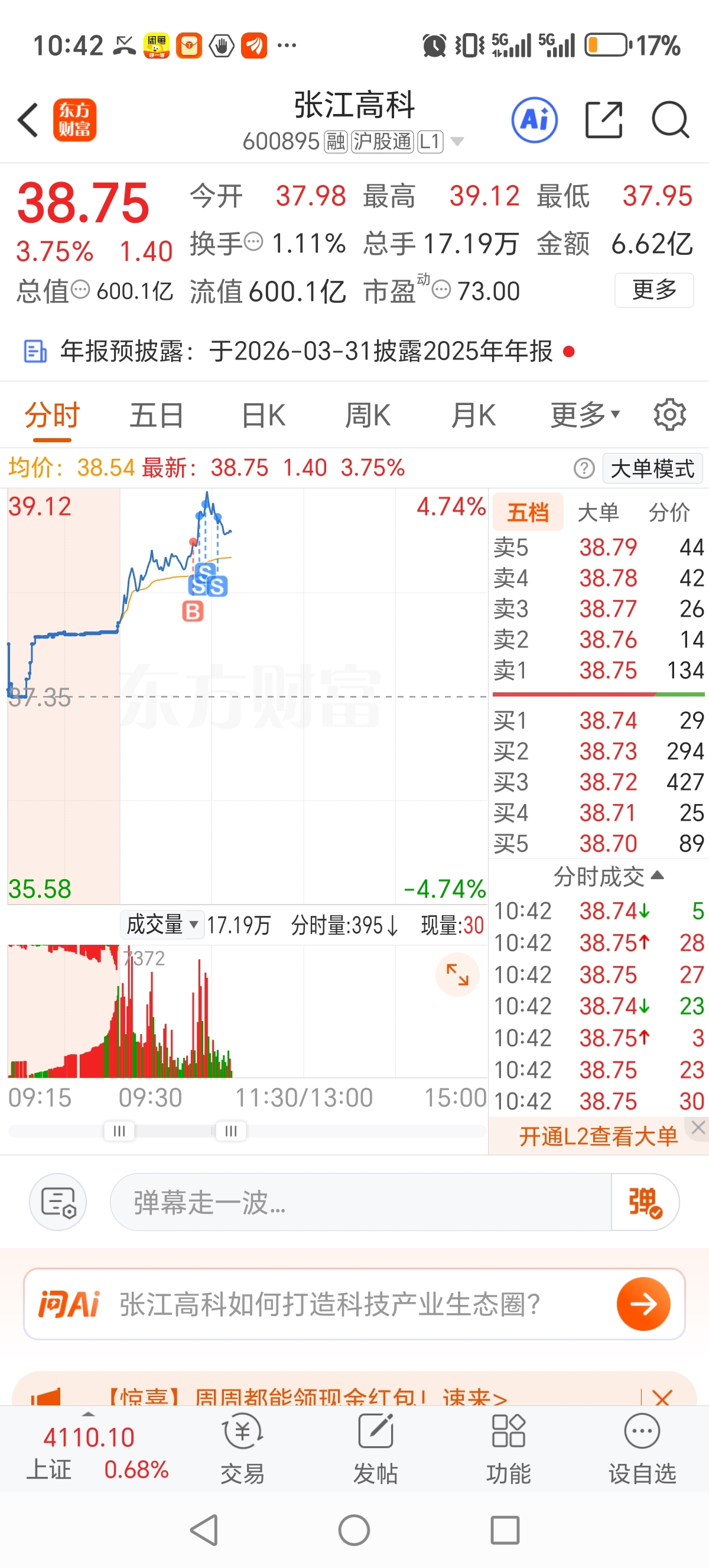 $张江高科(SH600895)$ 嘿嘿,今天低位进了一点,抛掉昨天进货,完美做T,坐等尾盘变绿再接回来,不变绿就保持仓位