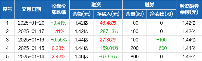 厦门空港:融资净买入46.48万元,融资余额1.42亿元(01-20)