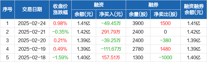 厦门空港:融资净偿还49.45万元,融资余额1.41亿元(02-24)