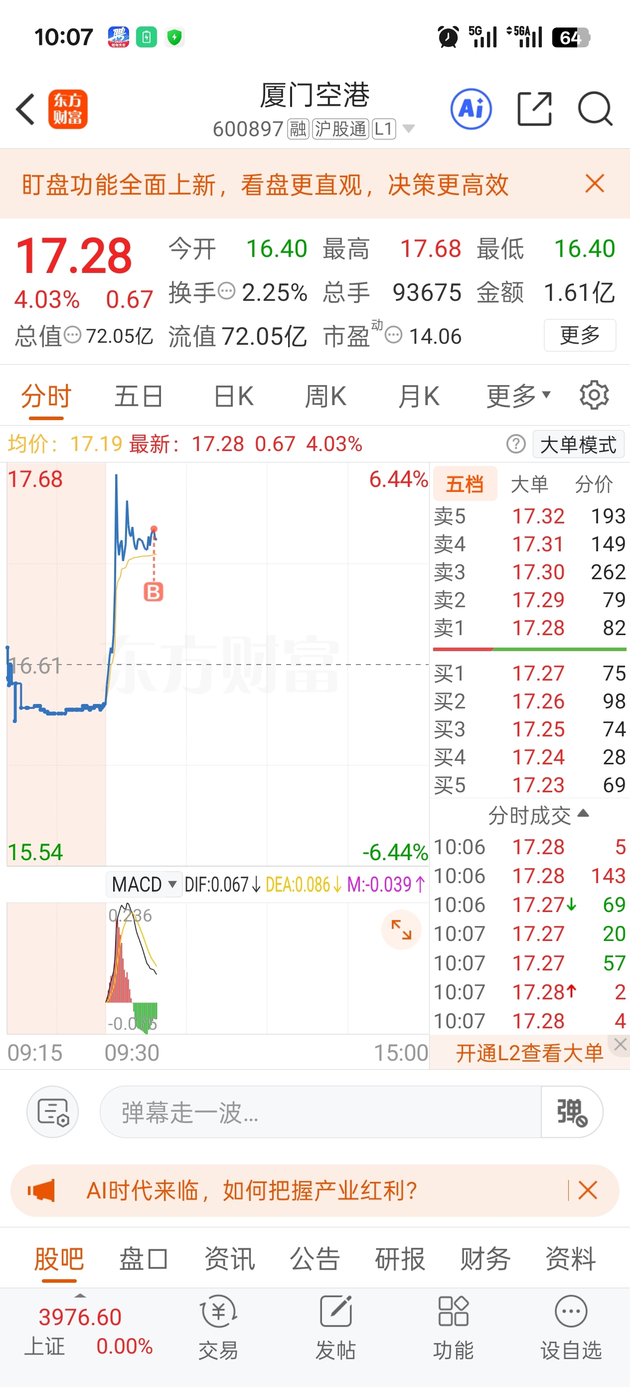 $厦门空港(SH600897)$ 点火失败,被老庄给砸了