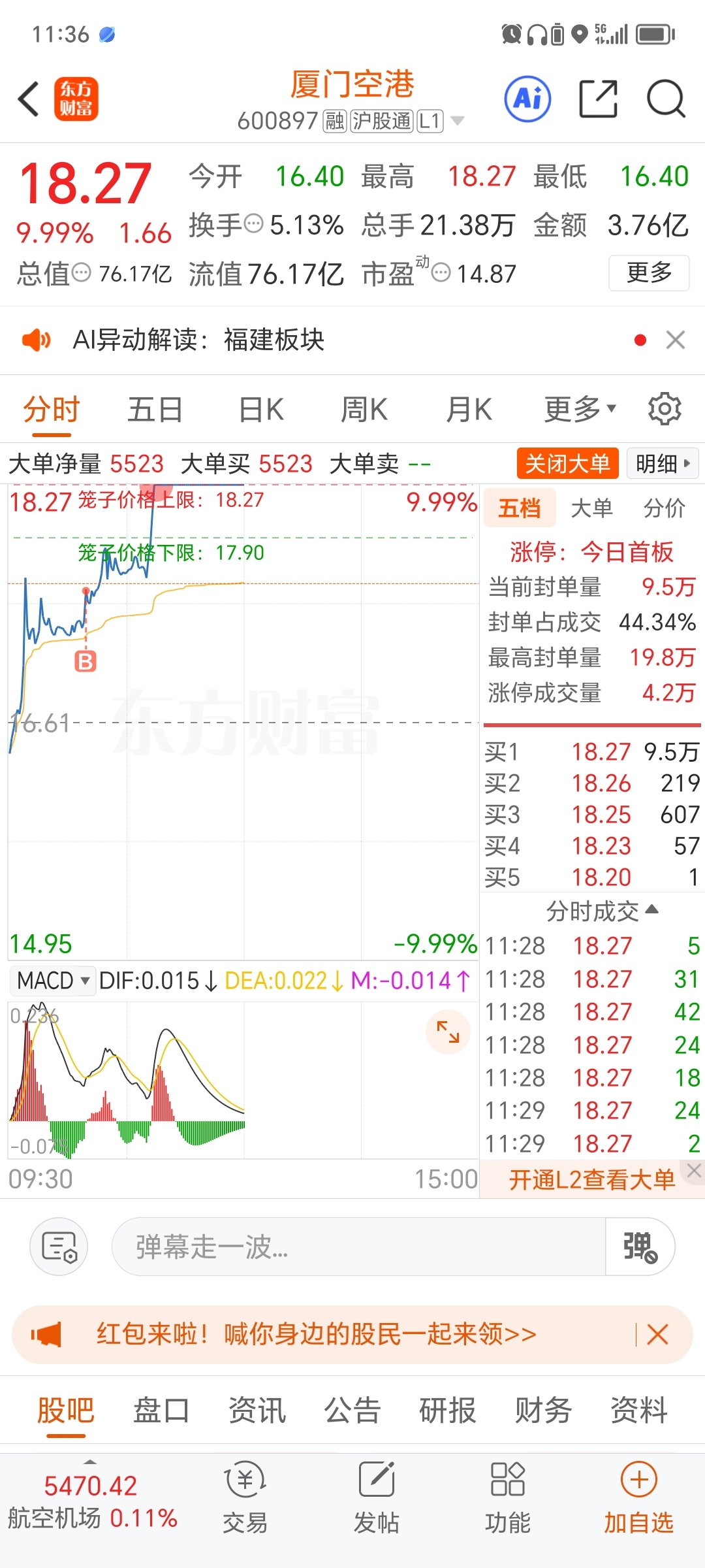 $厦门空港(SH600897)$ 抓涨停从来没有失误过