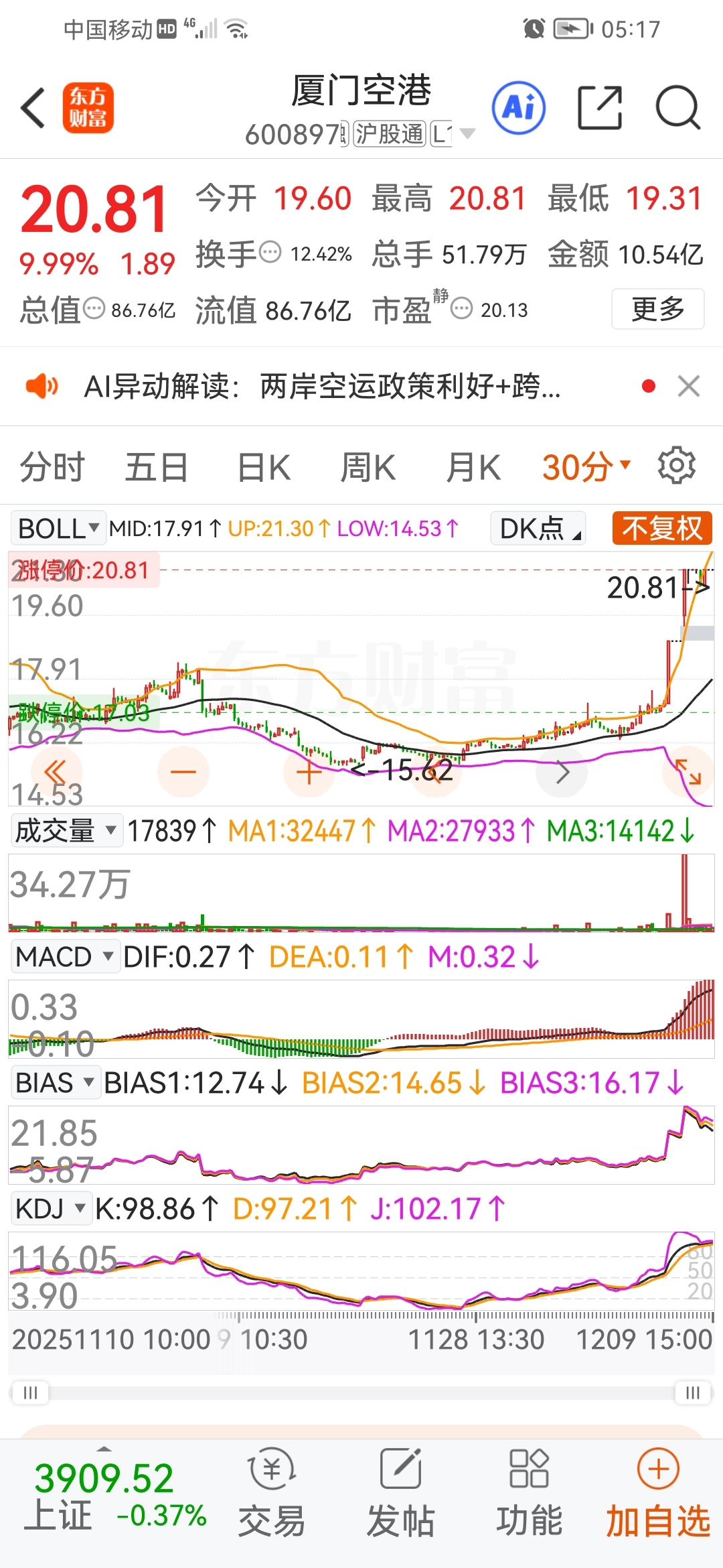 $厦门空港(SH600897)$ #复盘记录# 30分钟和60分钟走势图漂亮。