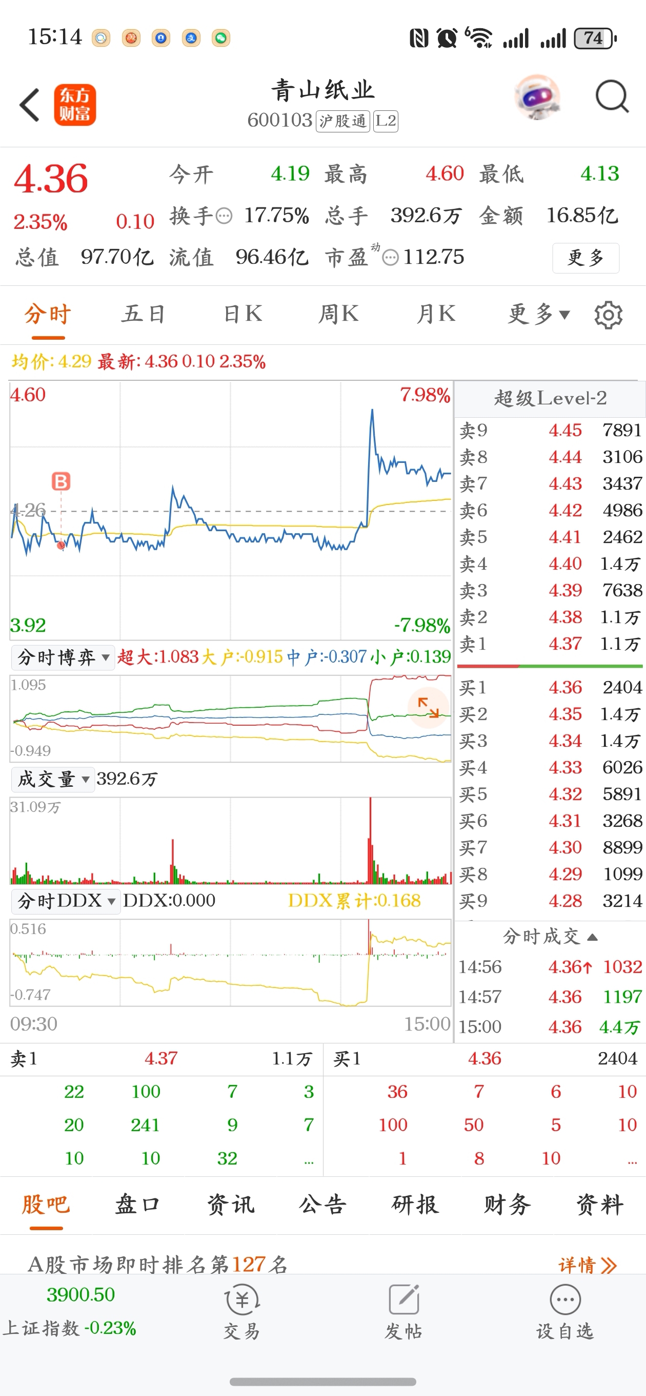 $青山纸业(SH600103)$ 小小青山继续低吸,里面脏东西太多,30万手点火都带不动…估计点火大哥都懵了…