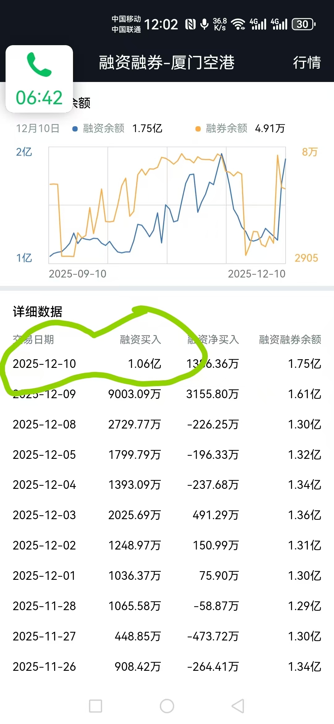 $厦门空港(SH600897)$ 昨天谁融资买了一个亿!