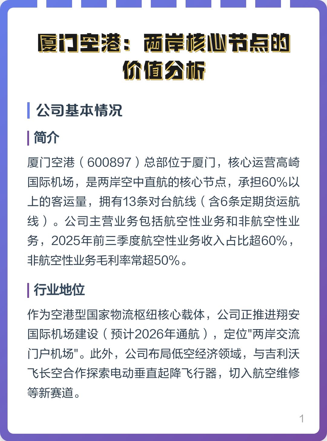 $厦门空港(SH600897)$ 收购落地,翔安国际机场2026年投入运营,是海峡两岸核心要道,在厦金占据重要核心地位,是开辟打开台湾海峡优先保障的重要通道,西部陆海新通道
