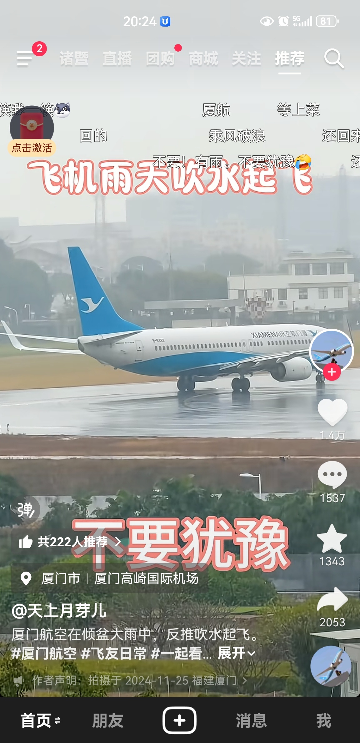 $厦门空港(SH600897)$ 机长问塔台要不要起飞? 塔台:不要,有雨。机长:收到!不要犹豫!