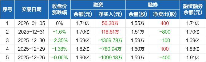 厦门空港:融资净买入56.3万元,融资余额1.71亿元(01-05)