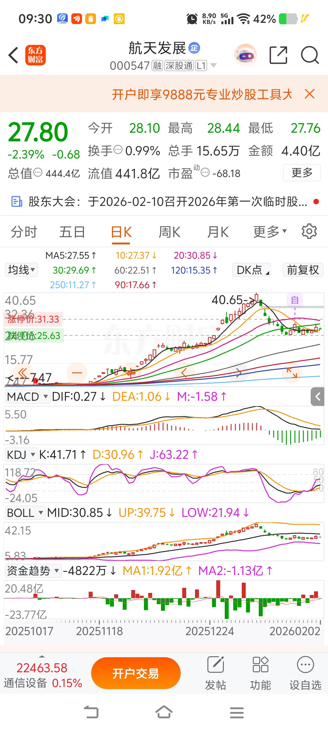 一卖一买虽然因为太忙看着航天发展27.8没注意东百开盘低两个多点?两者都是低两个