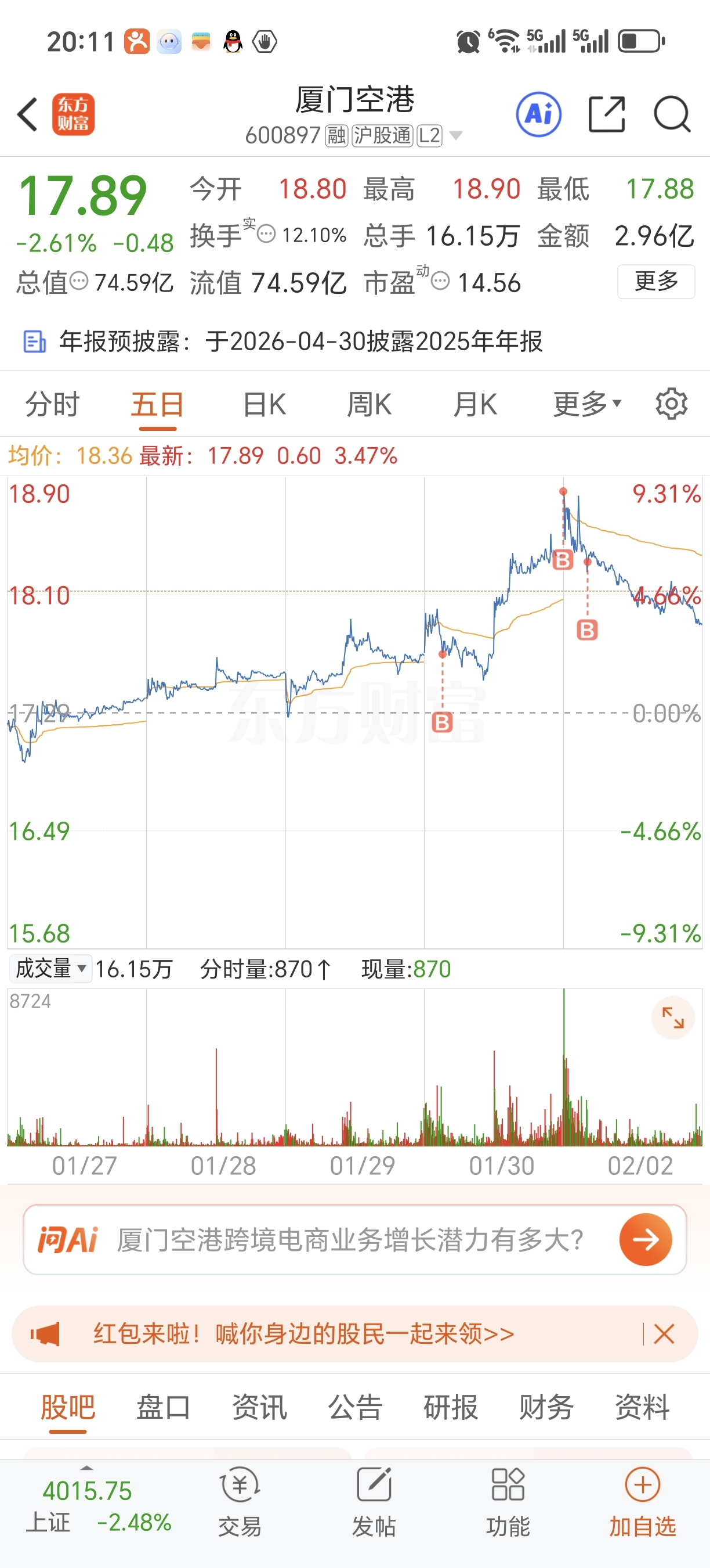 $厦门空港(SH600897)$ 春运在即,就这个涨幅,我不信还能跌到哪里去,尽管洗,BBBBB