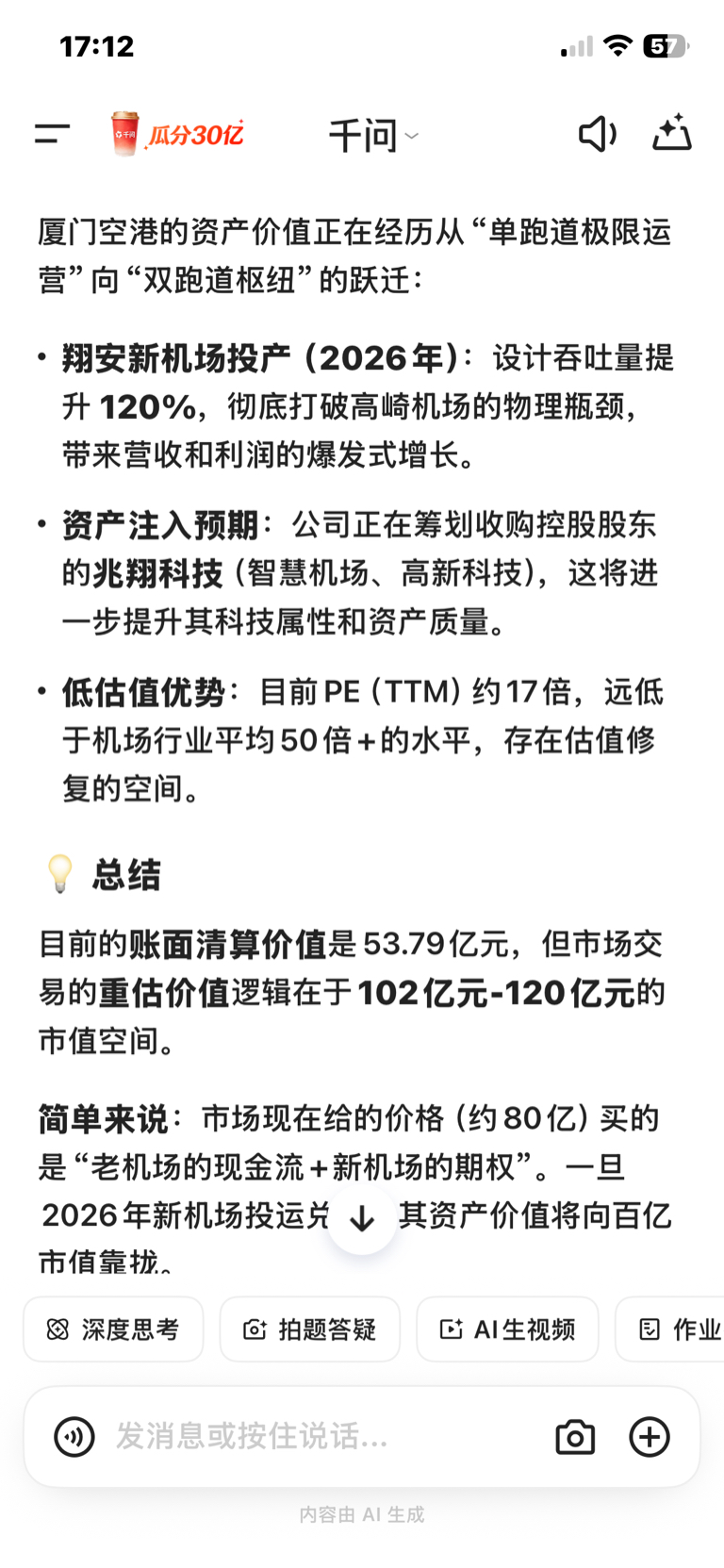 $厦门空港(SH600897)$ 千问说的