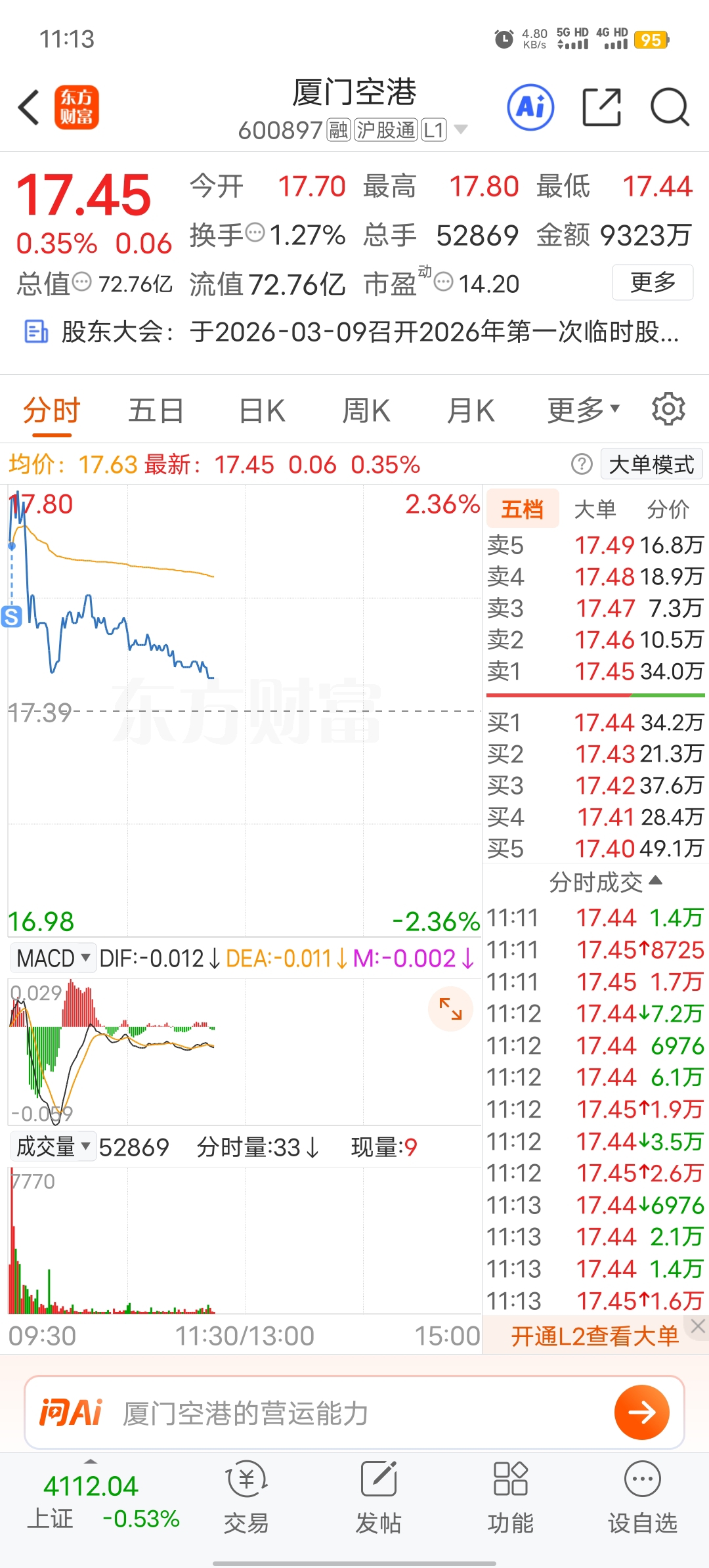 $厦门空港(SH600897)$ 开盘忍痛割肉了