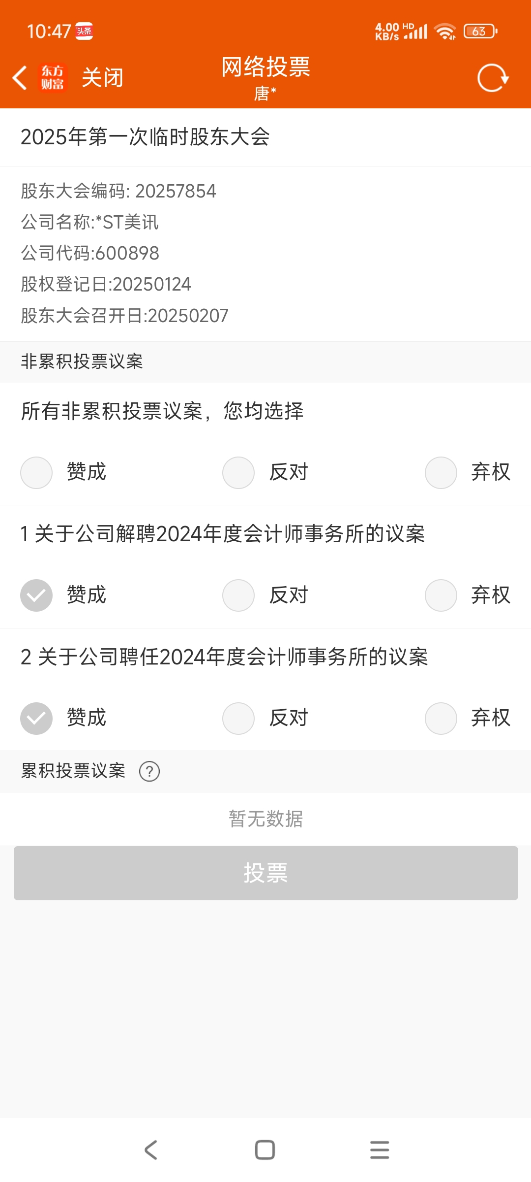 大股东,我已投票!