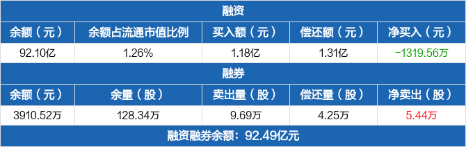 长江电力:融资净偿还1319.56万元,融资余额92.1亿元(05-19)