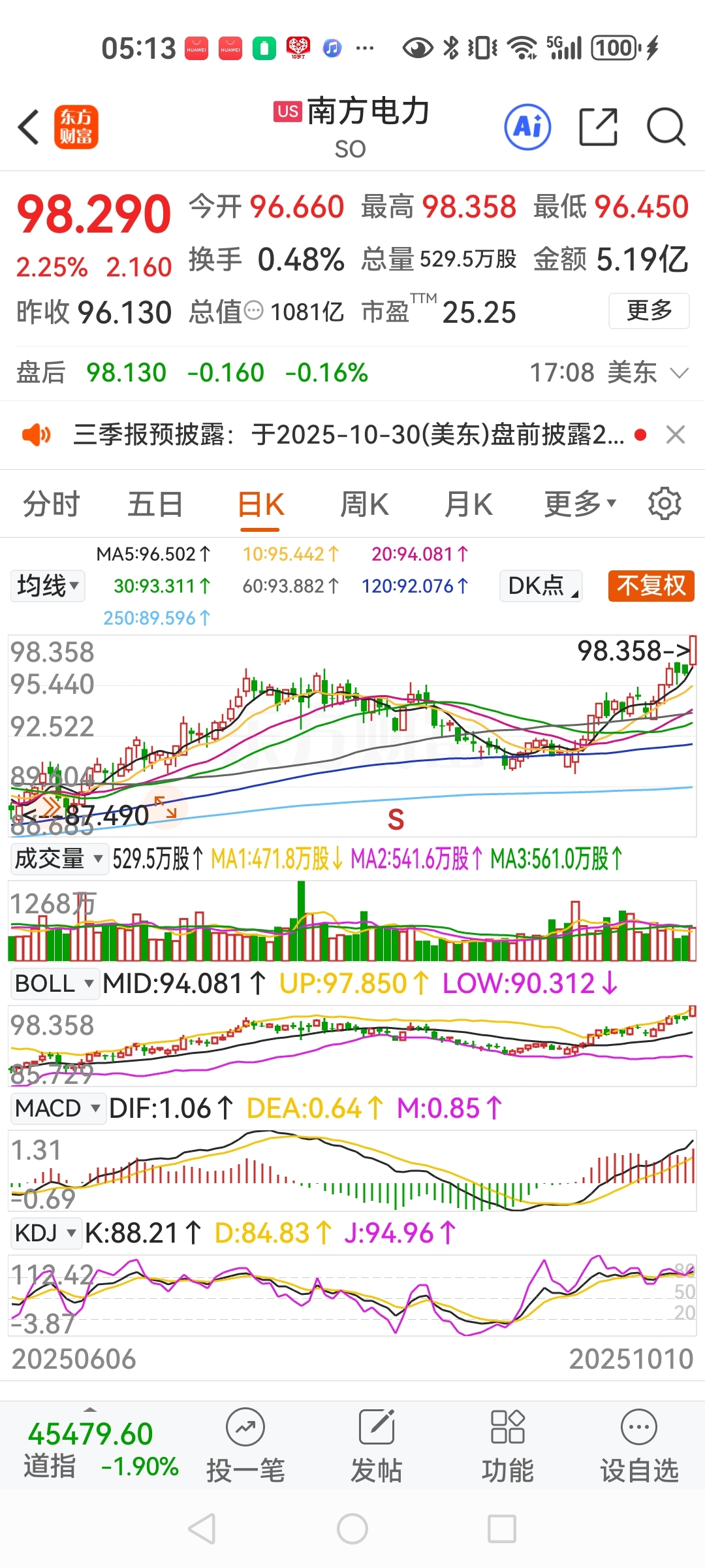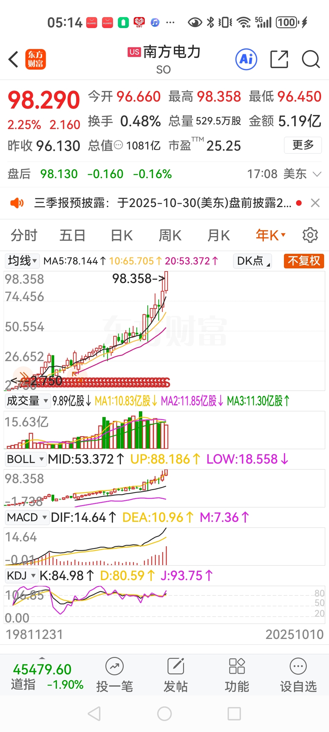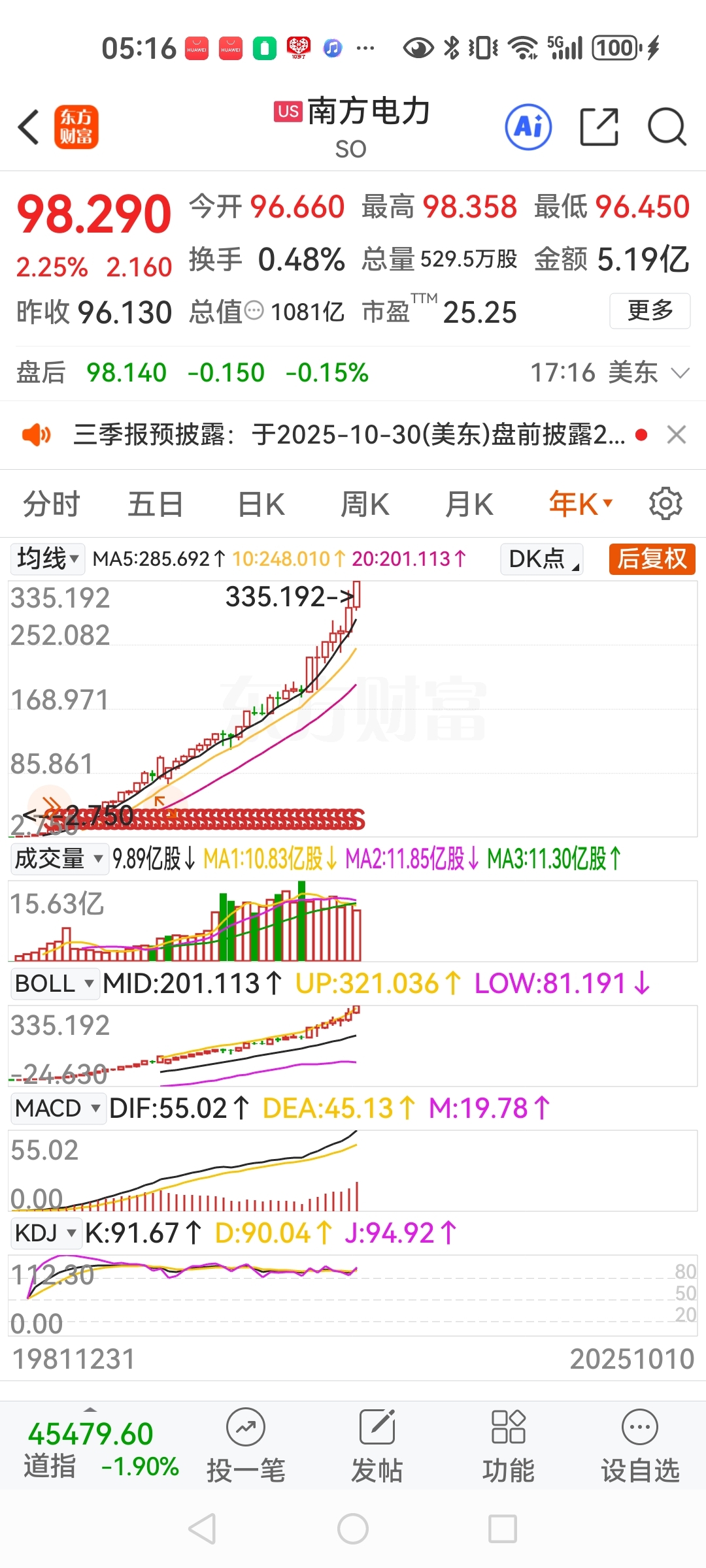 美股南方电力周五今早晨收盘又创历史新高,连续上涨了33年!美国的电力股演绎了电力