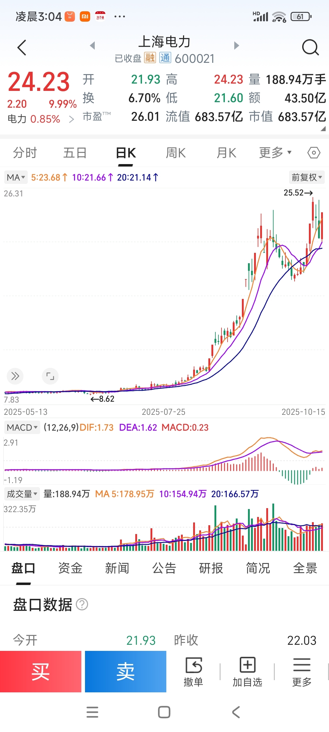 长江电力“老”了……看看“新人”上海电力吧!长江电力涨点就像大便结宫,跌起来却是