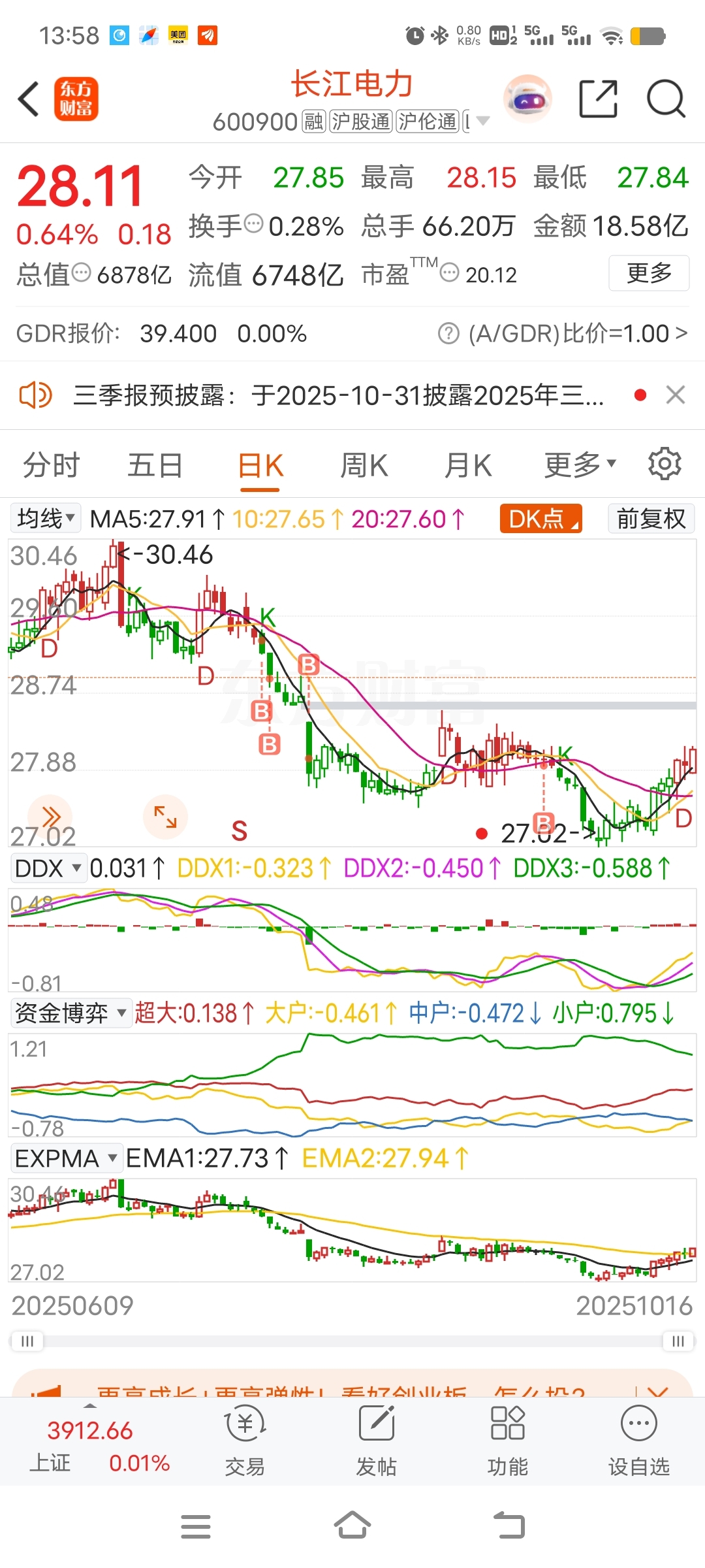 $长江电力(SH600900)$ 快点涨 我要回本本