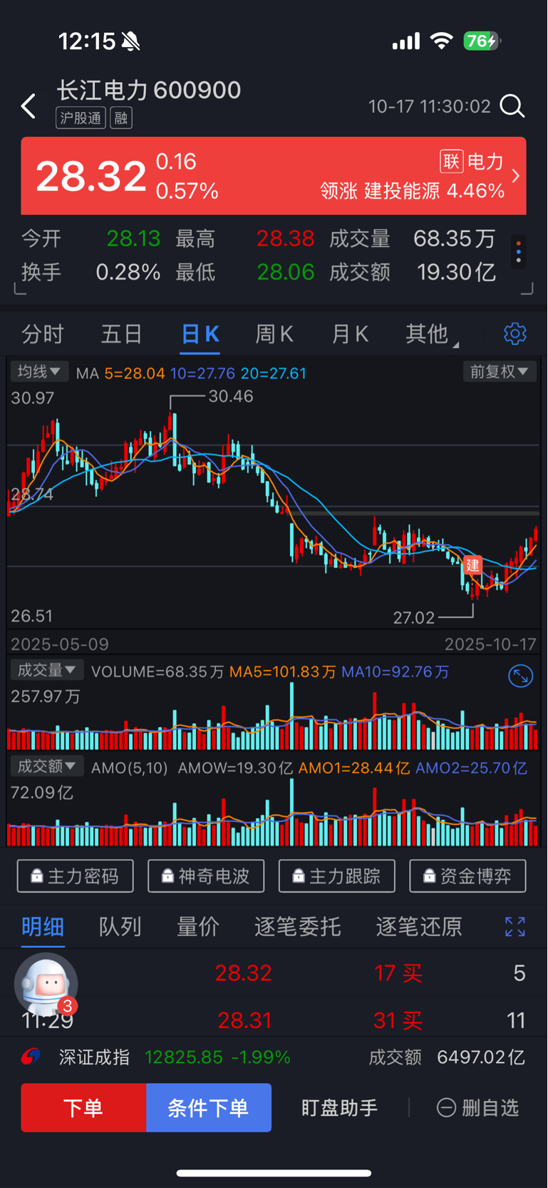 $长江电力(SH600900)$ 仓位还没建完 你就这么上去了 看来得寻找下一只标地了