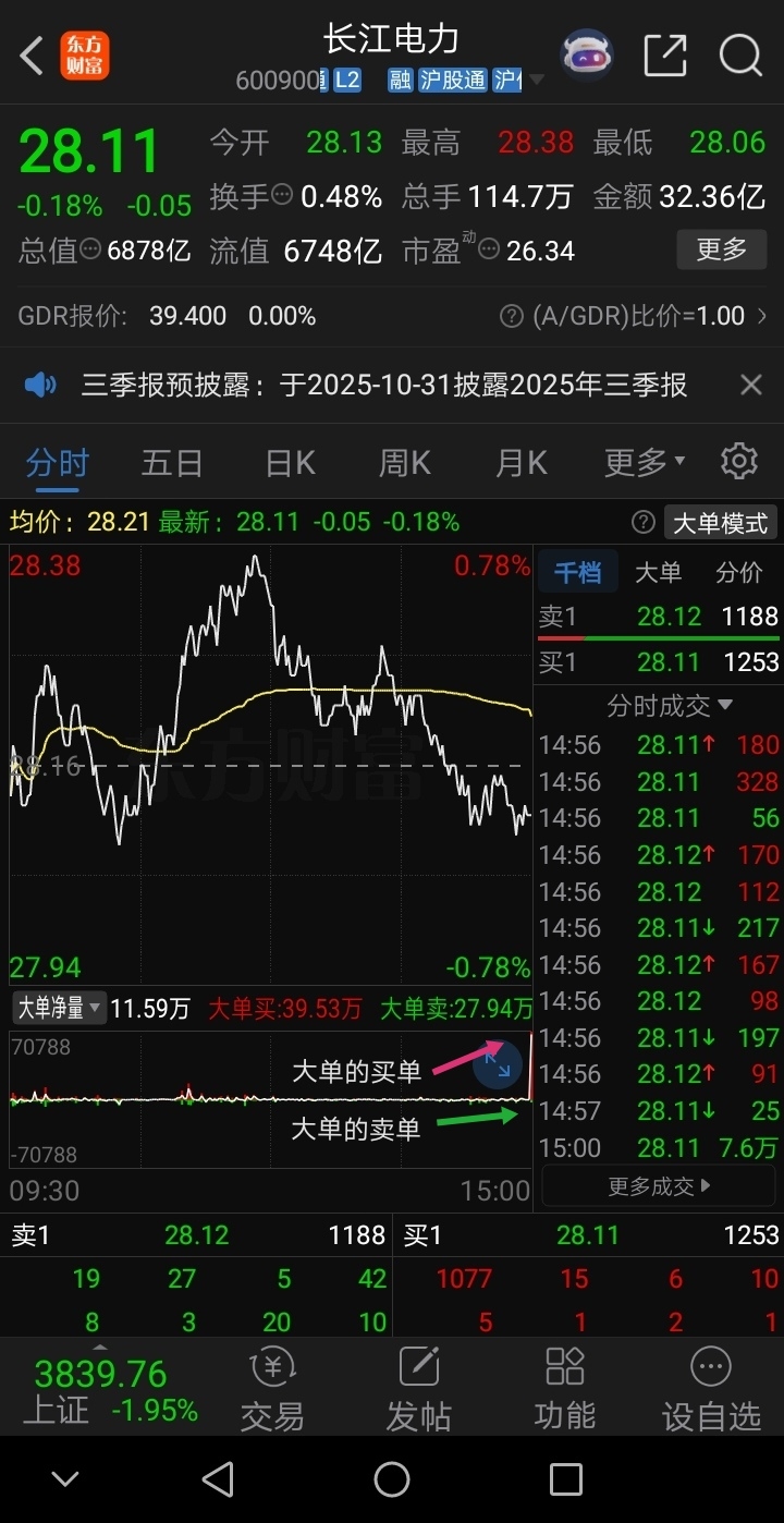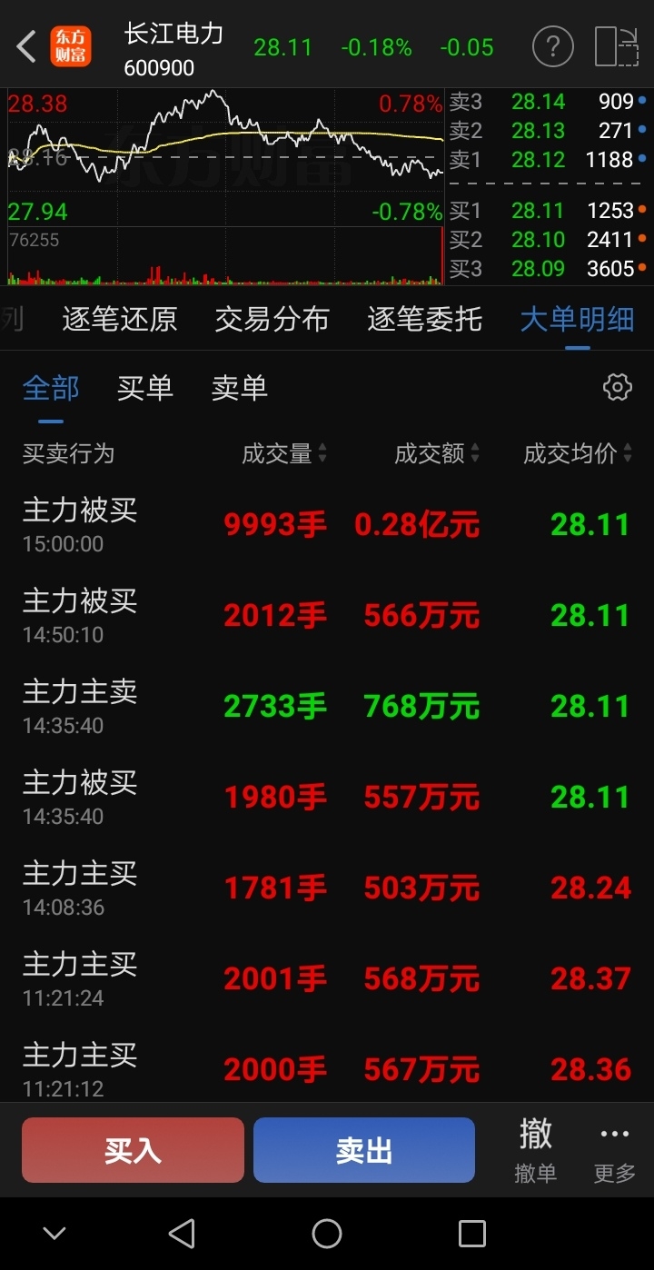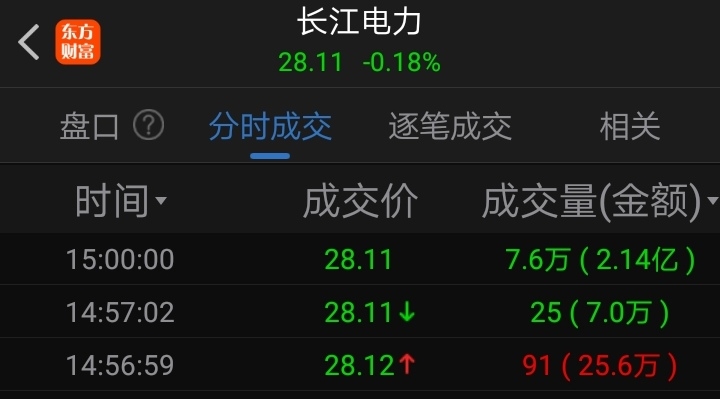 $长江电力(SH600900)$ 今天最后的集合竞价期间,有大户狂买7.6万手(2.14亿元)