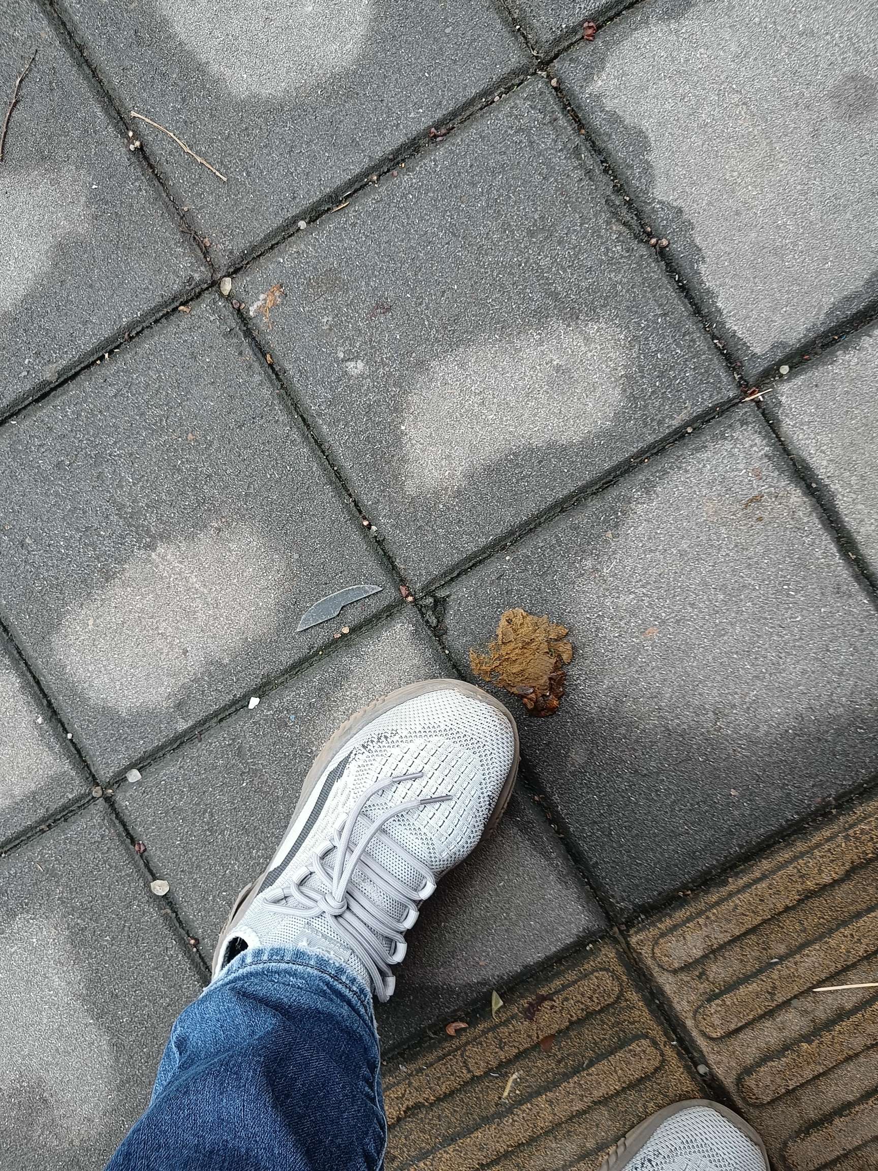 出门低头看手机结果踩到一坨黄金,看来今天运气不错,是个好兆头!