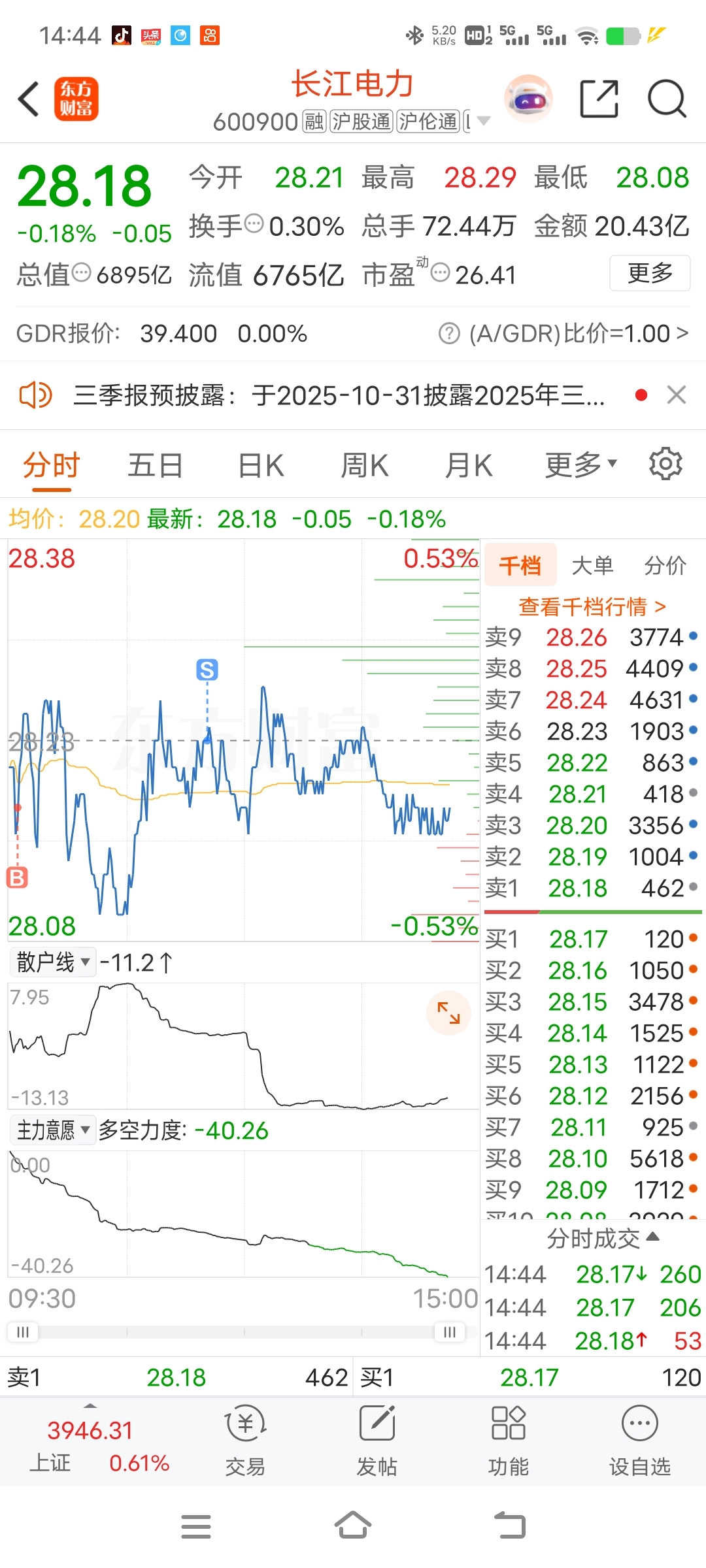 $长江电力(SH600900)$ 这个票不作为。本来补仓的。看见不涨,要卖了。